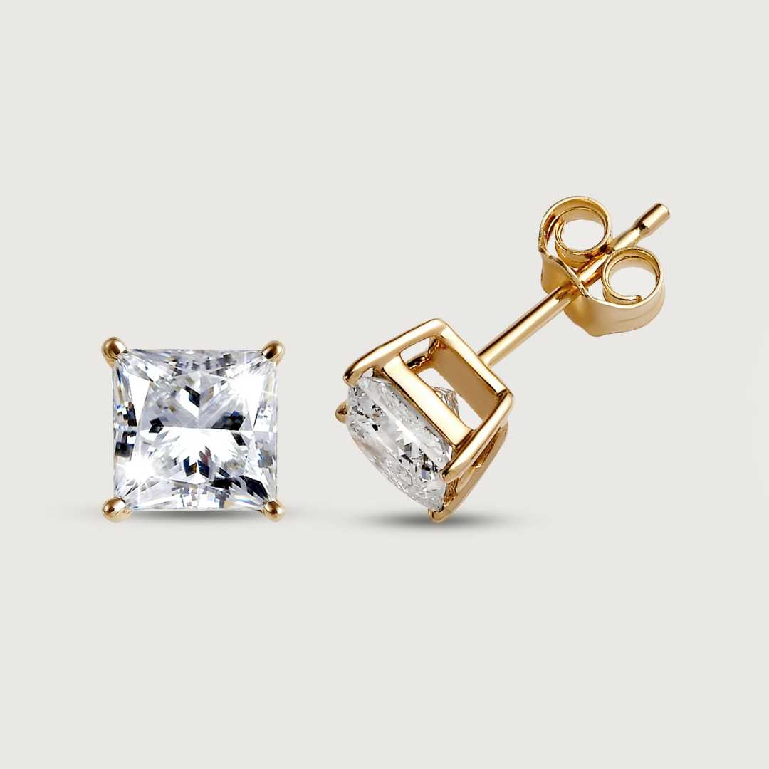 Versa 9K Gold Princess Cut Lab Grown Diamond Classic Stud Earrings
