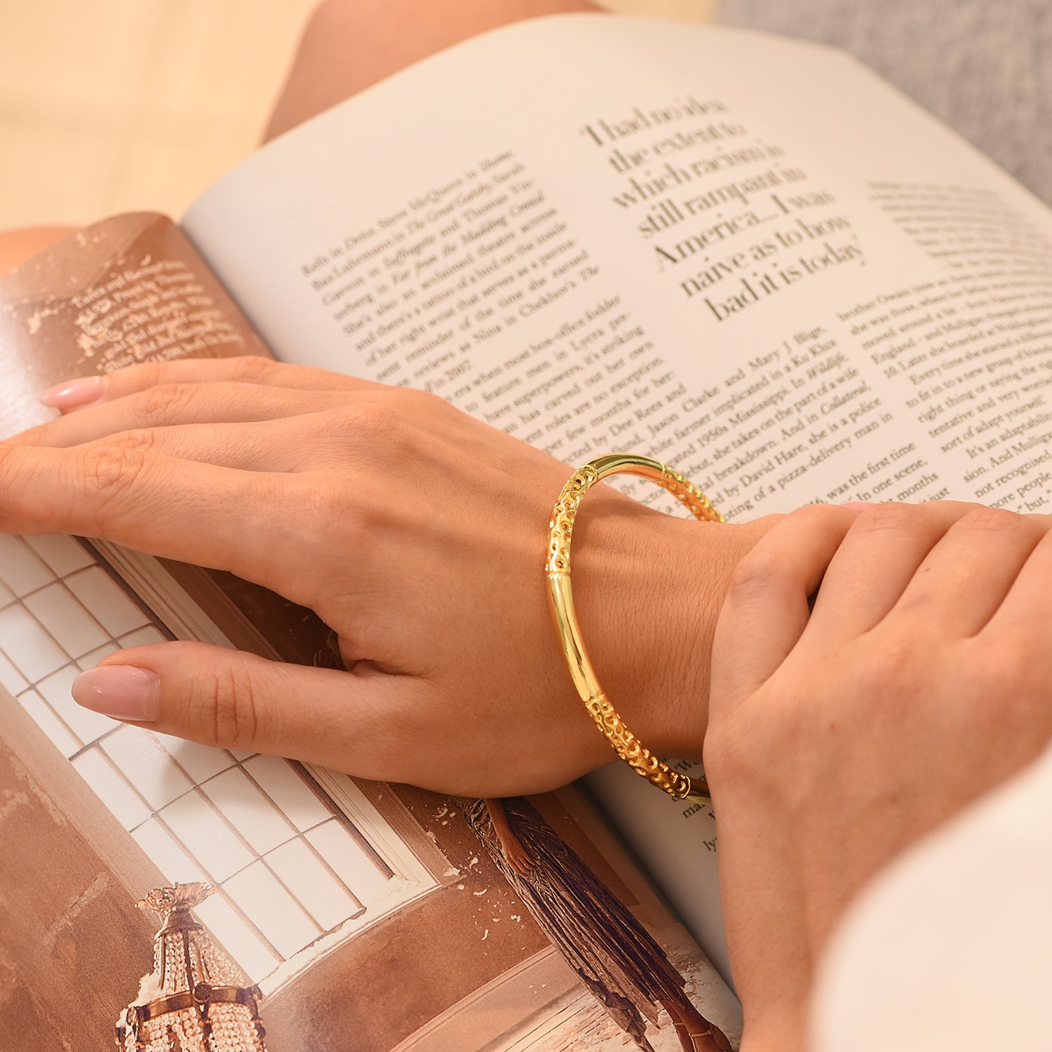 Ein charakteristischer Armreif aus Rachels meistverkaufter Armbandkollektion. Dieses elegante Design ist eine Kombination aus etwas Modernem und etwas Klassischem und weist einige ihrer atemberaubenden Allegro-Designs auf. Am besten kombinierbar mit Rachels charakteristischen Zeitmessern.