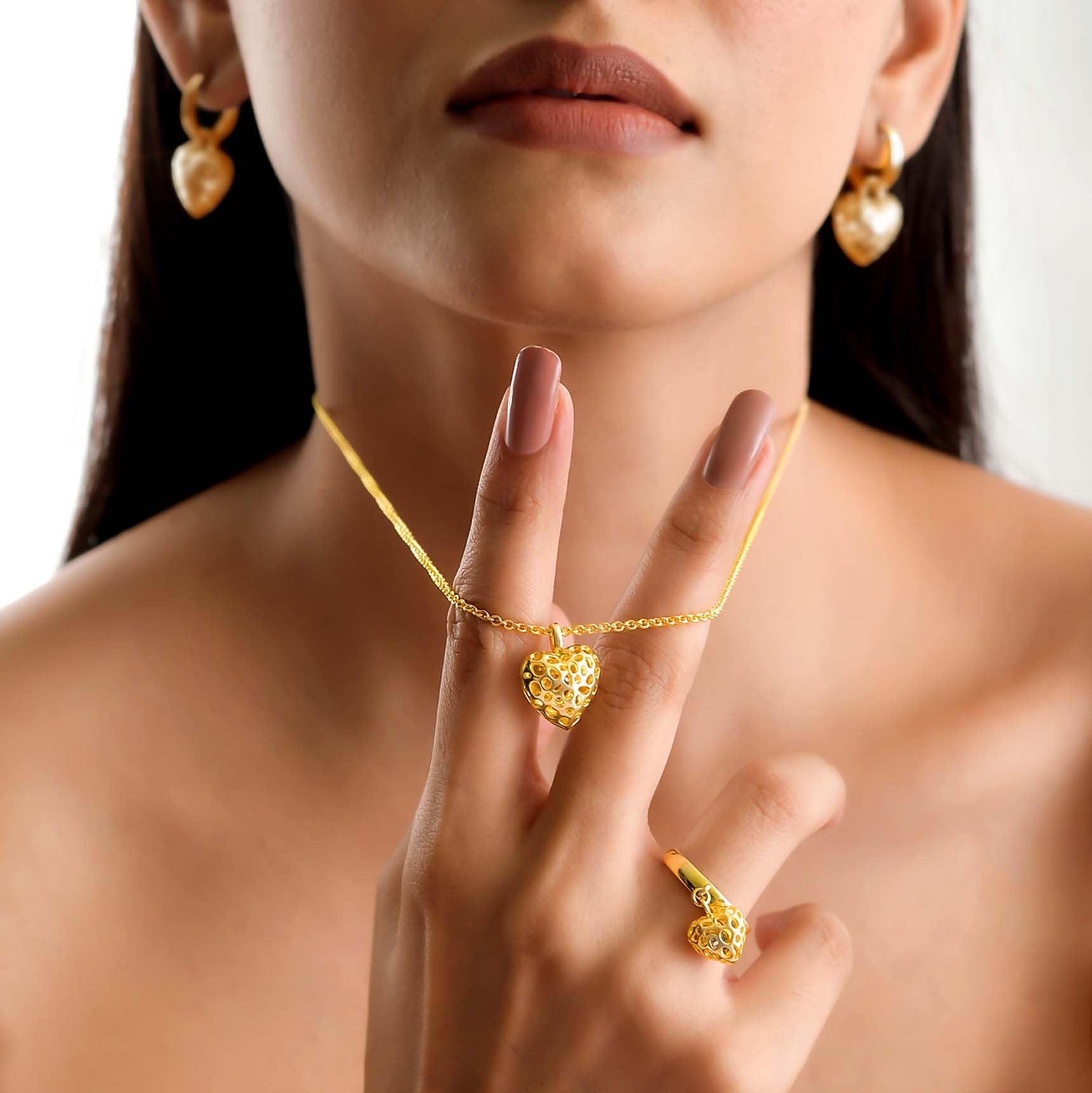 Angel Heart Necklace + Angel Heart Hoop Earrings + Angel Heart Charm Ring with Tanzanite