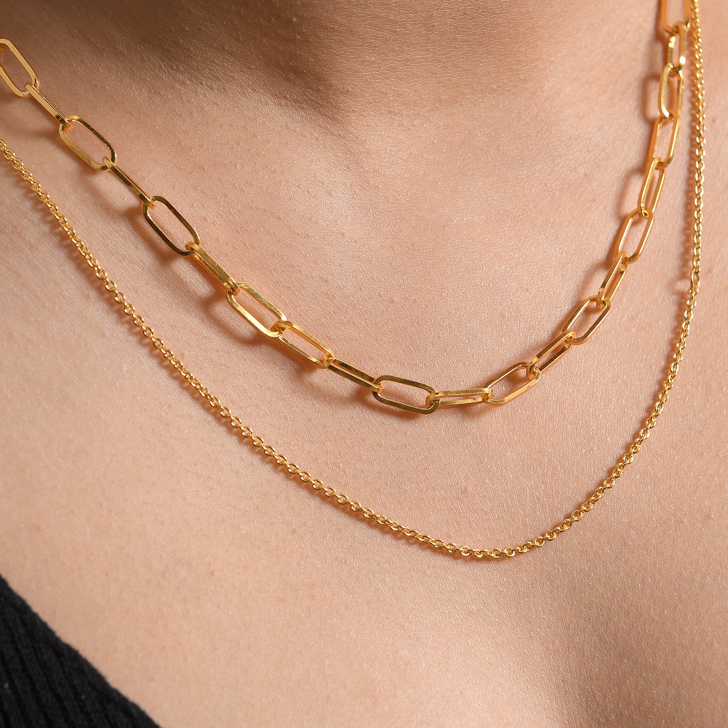 Die perfekte Kette, die man zu allem tragen kann! Ein Muss in Ihrem Styling-Kleiderschrank. Belcher-Glieder sind flüssig und bewegen sich bei jeder Bewegung Ihres Halses. Diese Kette ist elegant und superleicht. Tragen Sie sie also jeden Tag einzeln, um für zusätzlichen Glanz zu sorgen. Tragen Sie es allein oder kombinieren Sie es, um Ihren eigenen Look zu kreieren. Kaufen Sie unsere Layering-Halsketten .