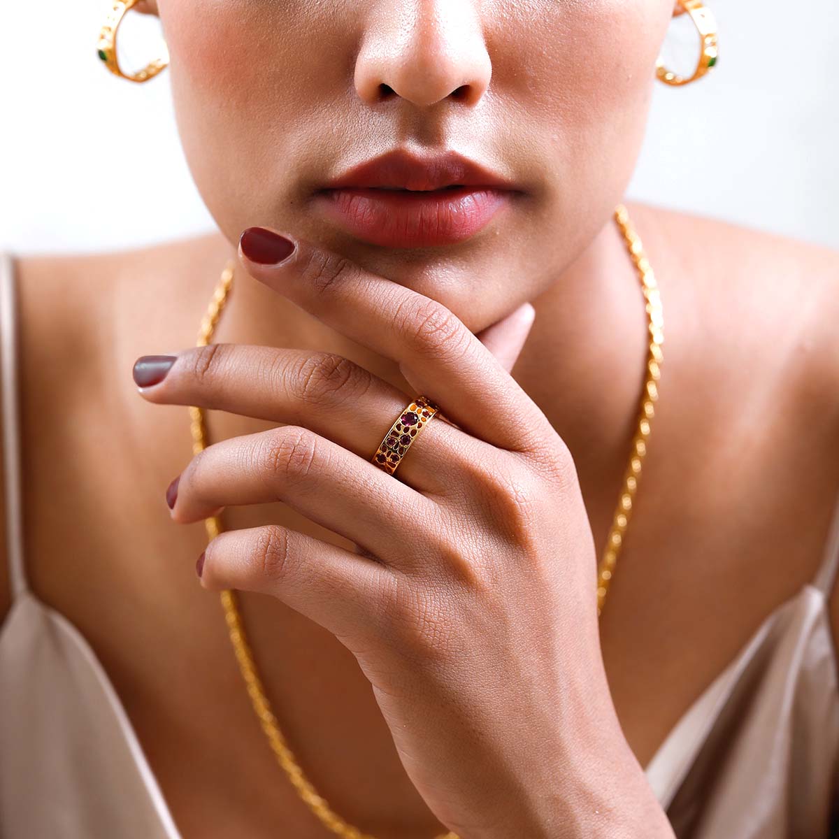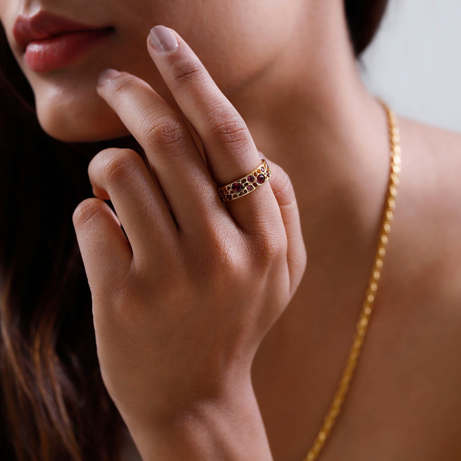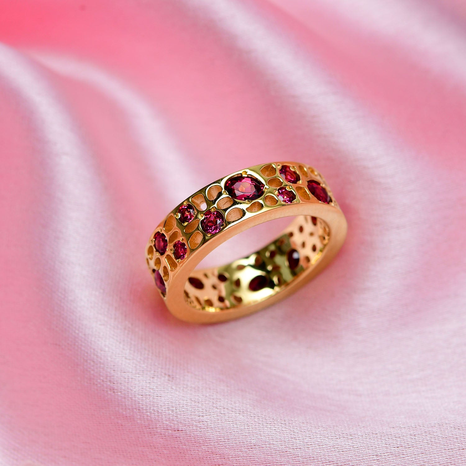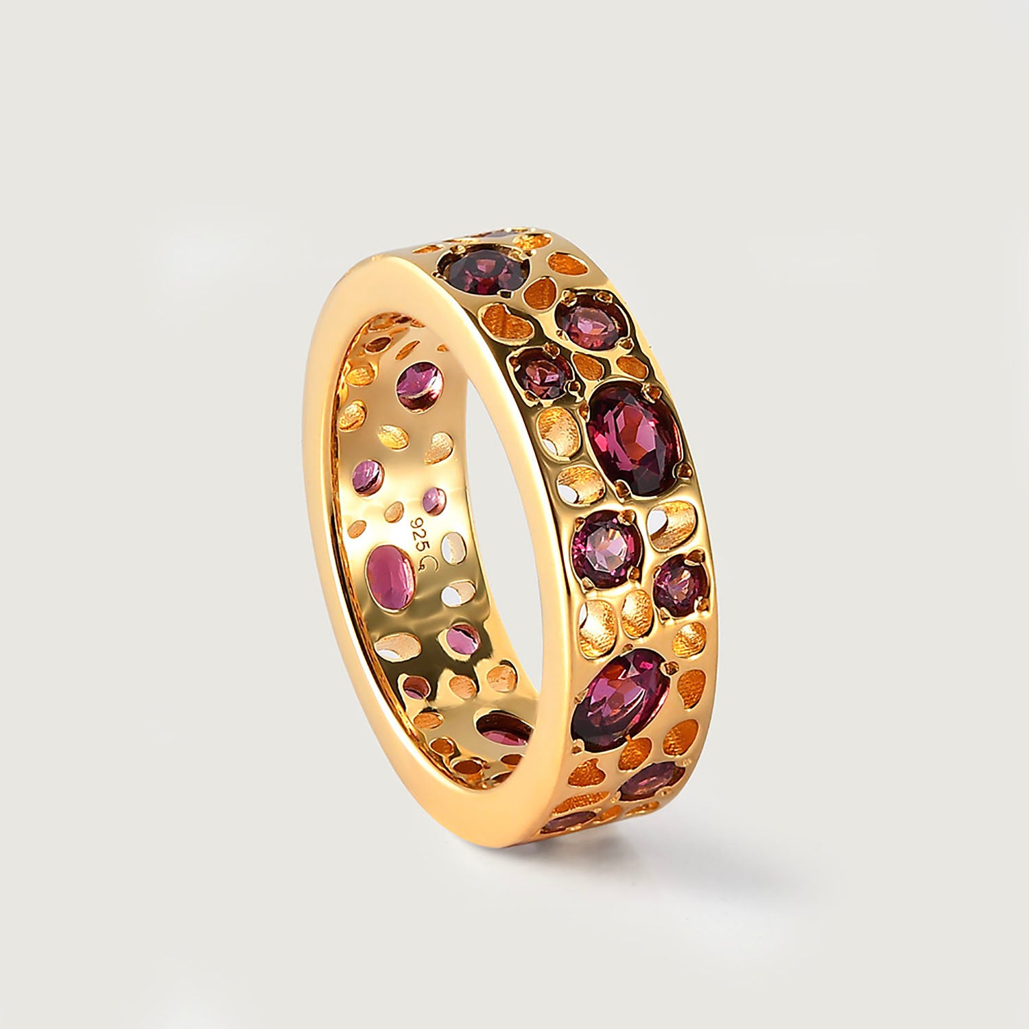 Granat-Gitter-Bandring – die perfekte Möglichkeit, Mode und Funktion zu kombinieren. Dieser echte Granat der Güteklasse AAA aus 18-karätigem Vermeil-Gold ist ein Bestseller-Ring, der von der Textur von geröstetem Brot inspiriert ist. Erleben Sie das faszinierende Design und gönnen Sie sich einen unvergesslichen Genuss voller Eleganz und Glanz. Sind Sie bereit, eine Erklärung abzugeben?