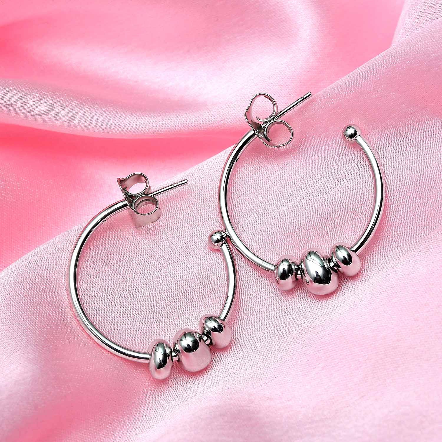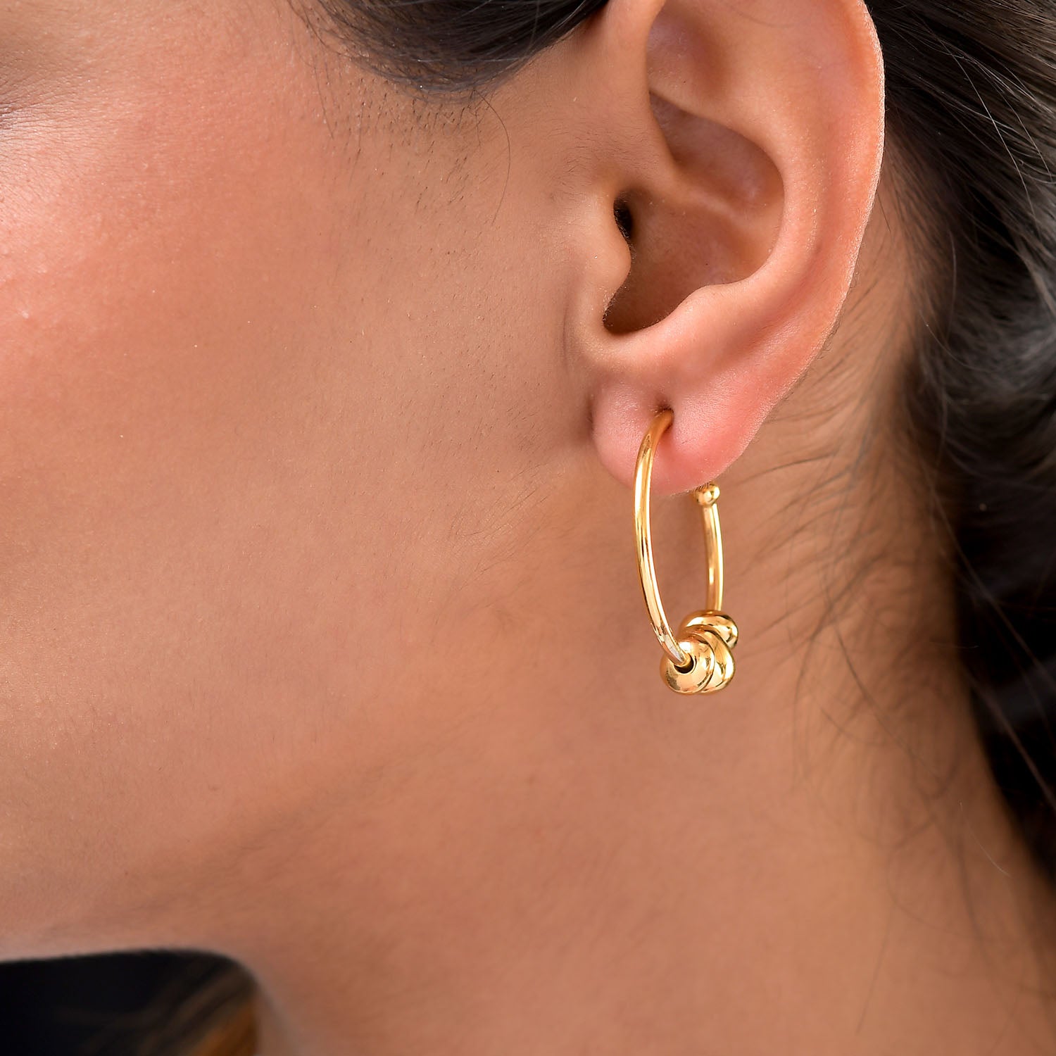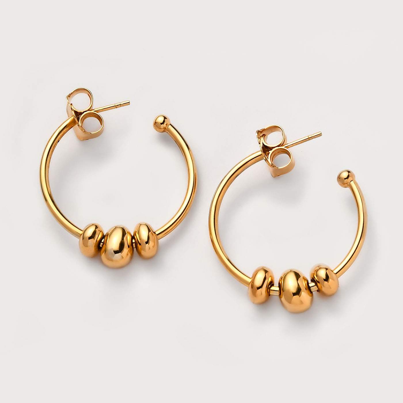 Fügen Sie Ihrer Sammlung neue Reifen hinzu. Mit 3 Anhängern können diese Hopfenohrringe auf mehr als eine Weise getragen werden! Schmücken Sie die Vielseitigkeit und kommen Sie mit Stil voran. Die mit Druckverschlüssen gesicherten mondförmigen Ohrringe werden für immer ein fester Bestandteil Ihres Stils sein.