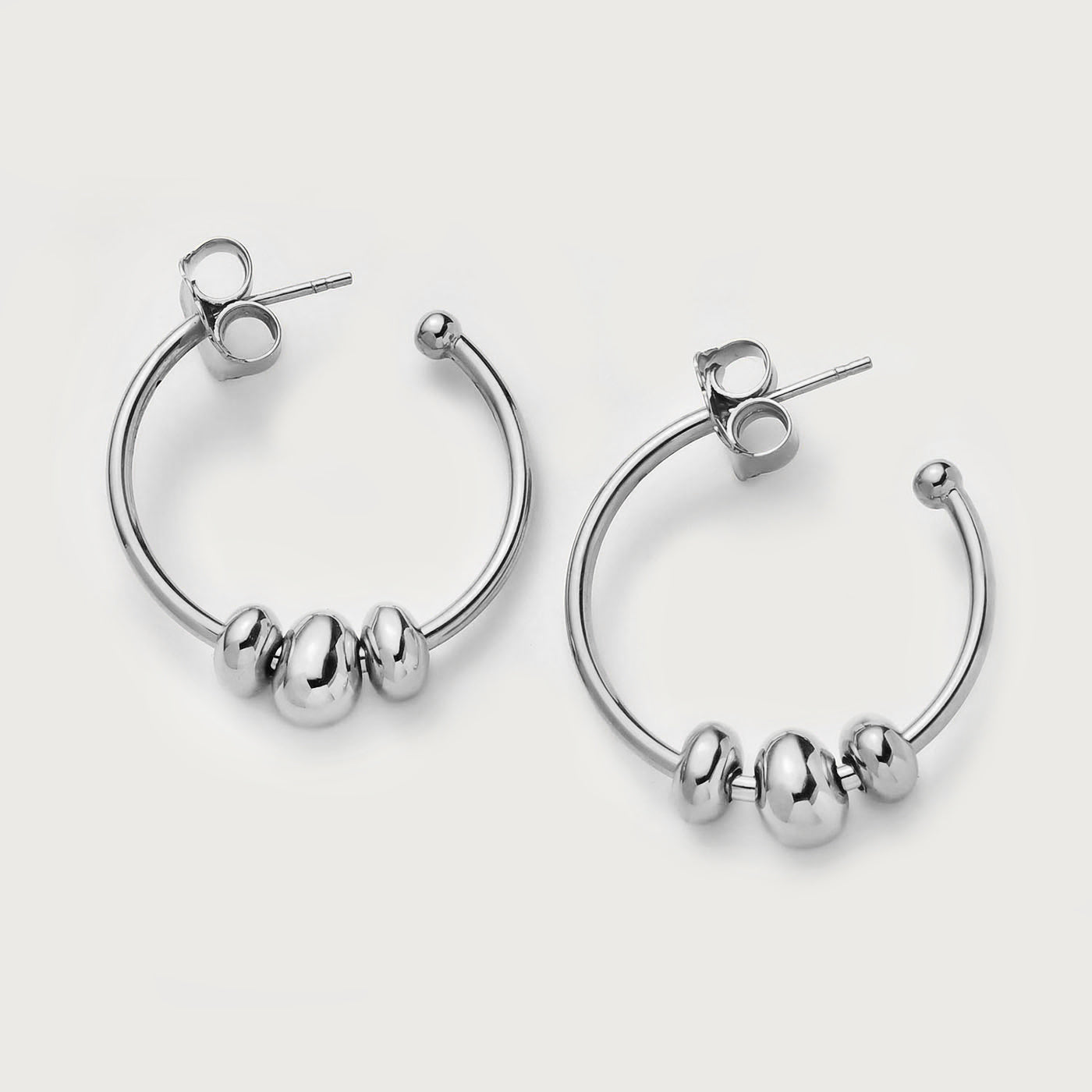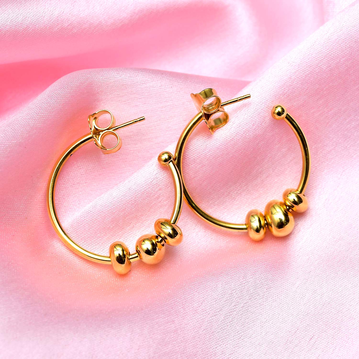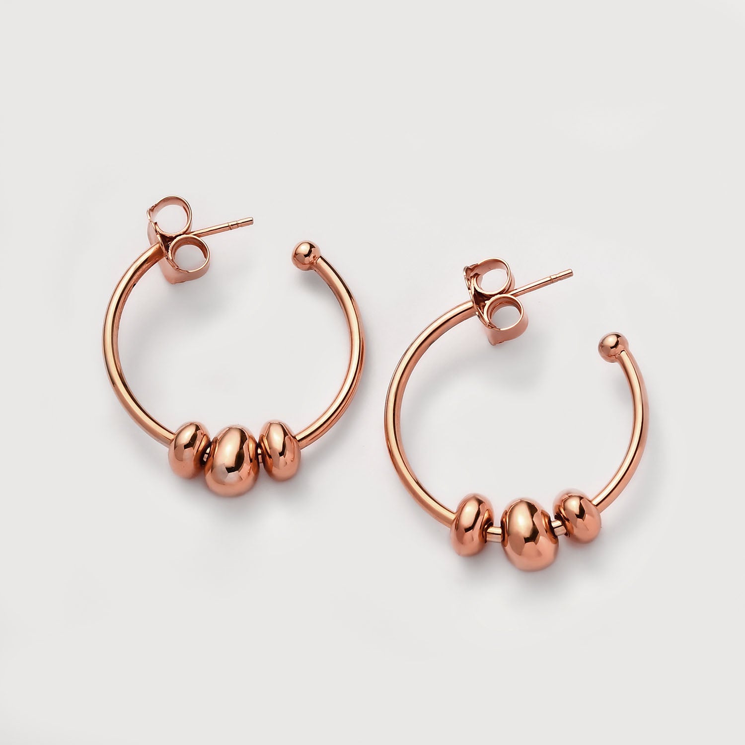Fügen Sie Ihrer Sammlung neue Reifen hinzu. Mit 3 Anhängern können diese Hopfenohrringe auf mehr als eine Weise getragen werden! Schmücken Sie die Vielseitigkeit und kommen Sie mit Stil voran. Die mit Druckverschlüssen gesicherten mondförmigen Ohrringe werden für immer ein fester Bestandteil Ihres Stils sein.