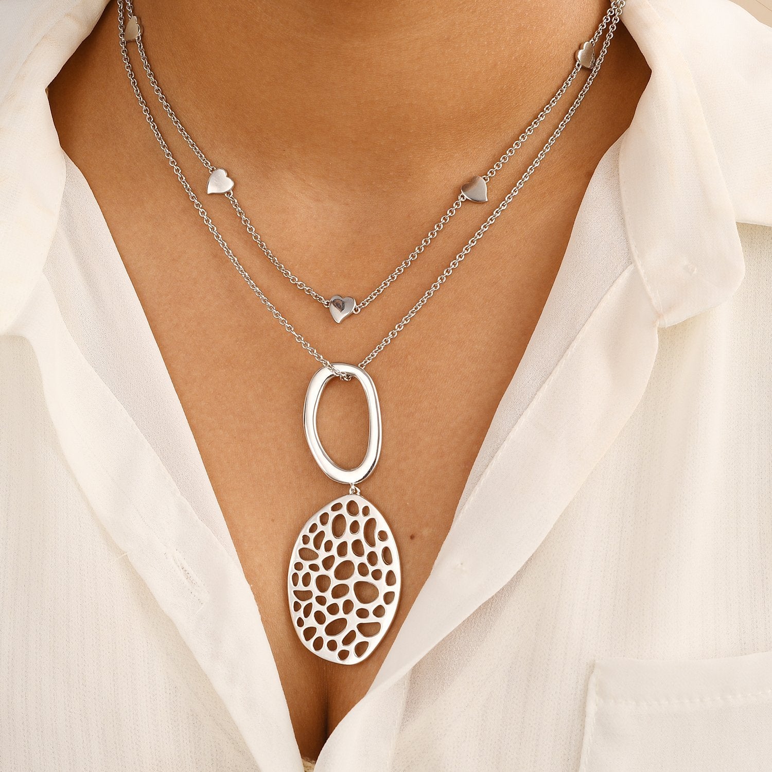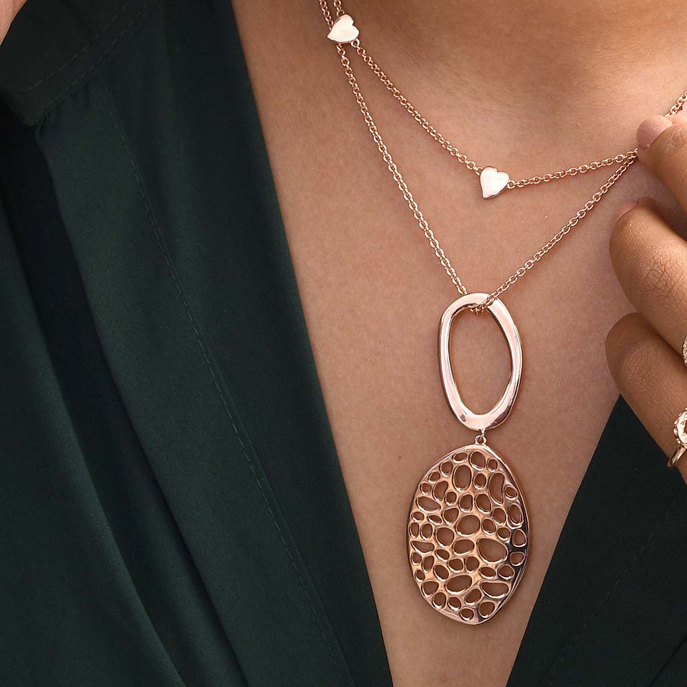 Tragen Sie ein Statement-Stück, das alle Blicke auf Ihren Stil lenkt! Dieser ikonische Hingucker aus Rachels Gitterkollektion ist mit Doppelscheiben ausgestattet und weist ihr charakteristisches Design auf. Ein auffälliges Stück zur Vervollständigung Ihres Looks. Es ist die perfekte Layering-Halskette , die Sie mit anderen Halsschmuckstücken tragen können.
