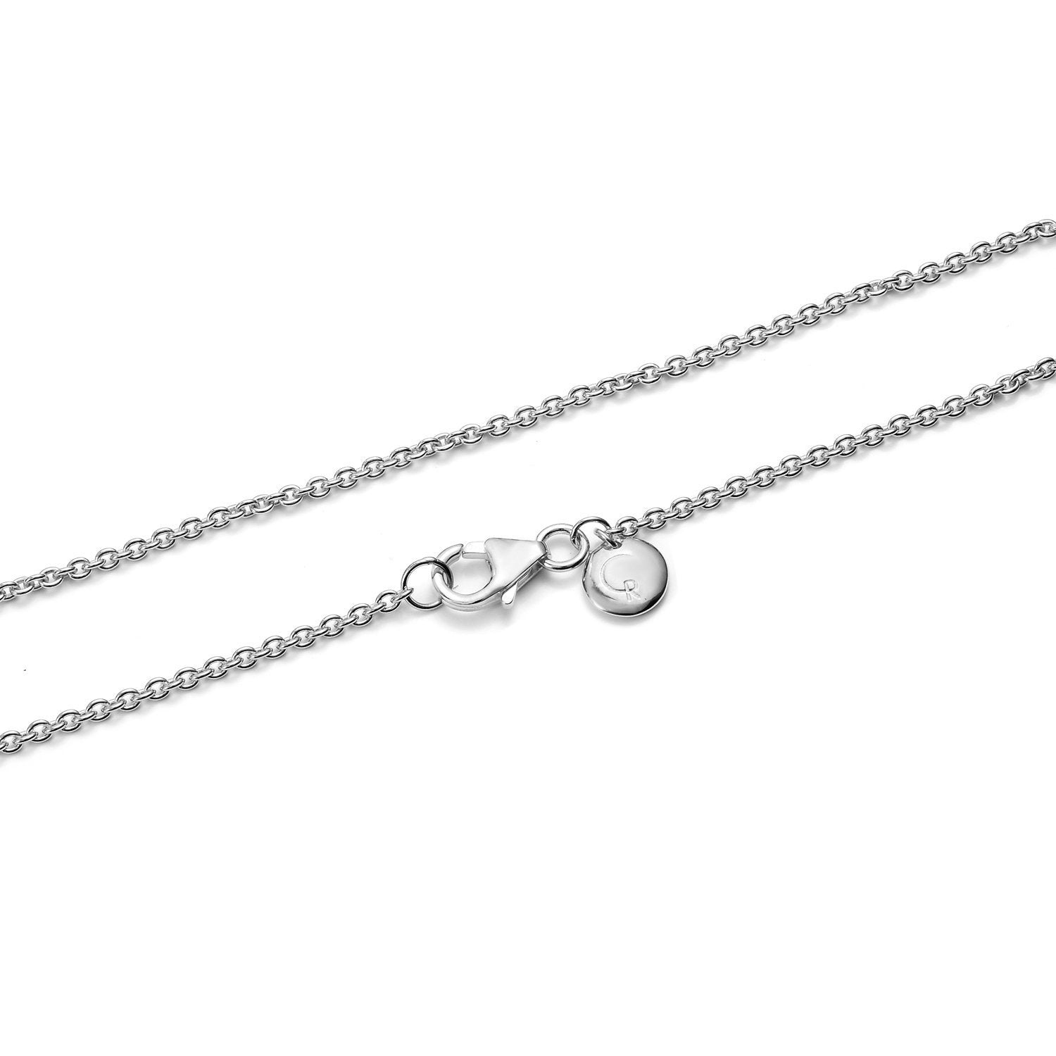 Die Halskette ist aus Sterlingsilber gefertigt und kann mit Hilfe eines Karabinerverschlusses gesichert werden, zusätzlich verziert mit einem Rachel Galley-Anhänger.
