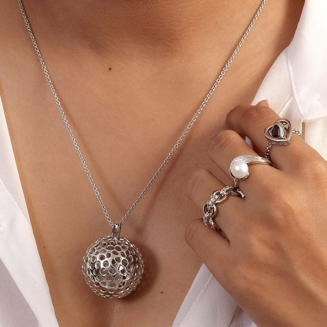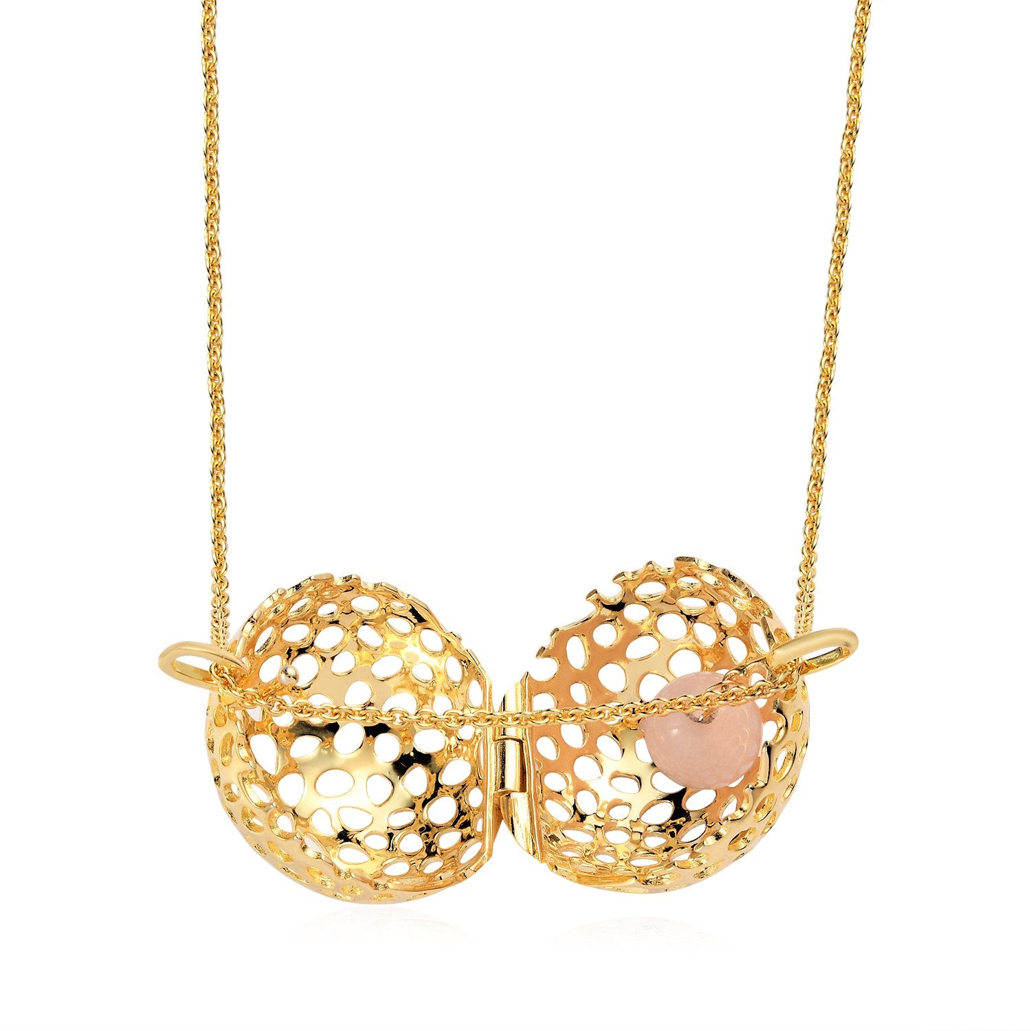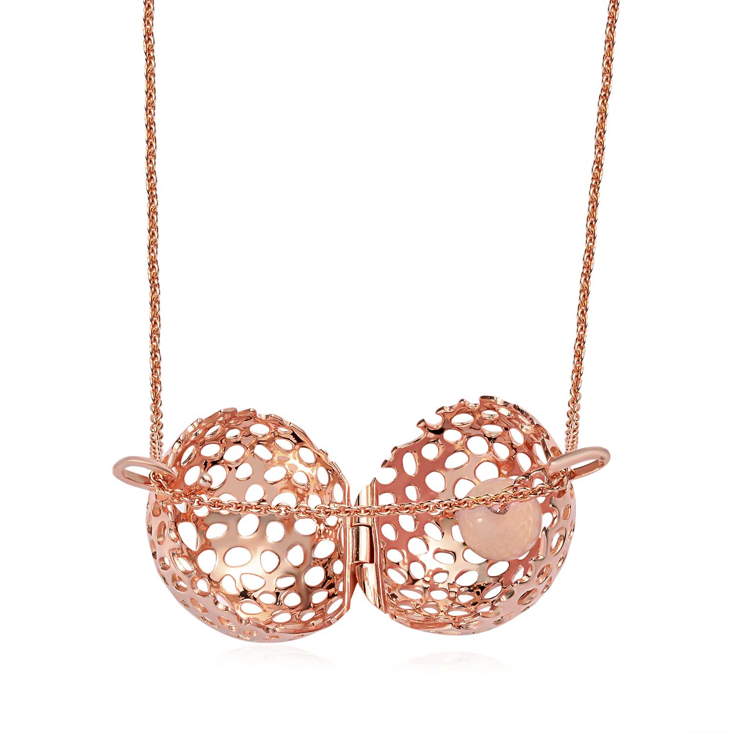 Das aufwendige Gitterwerk enthält im Inneren eine wunderschöne, pastellfarbene Rosenquarzperle. Das Globus-Design ist aufklappbar. Der Anhänger wird zusätzlich mit einer 30-Zoll-Kette geliefert. Perfekt zum alleinigen Tragen für einen Statement-Look; Kann mit anderen Layering-Halsketten kombiniert werden, um den Look zu vervollständigen.