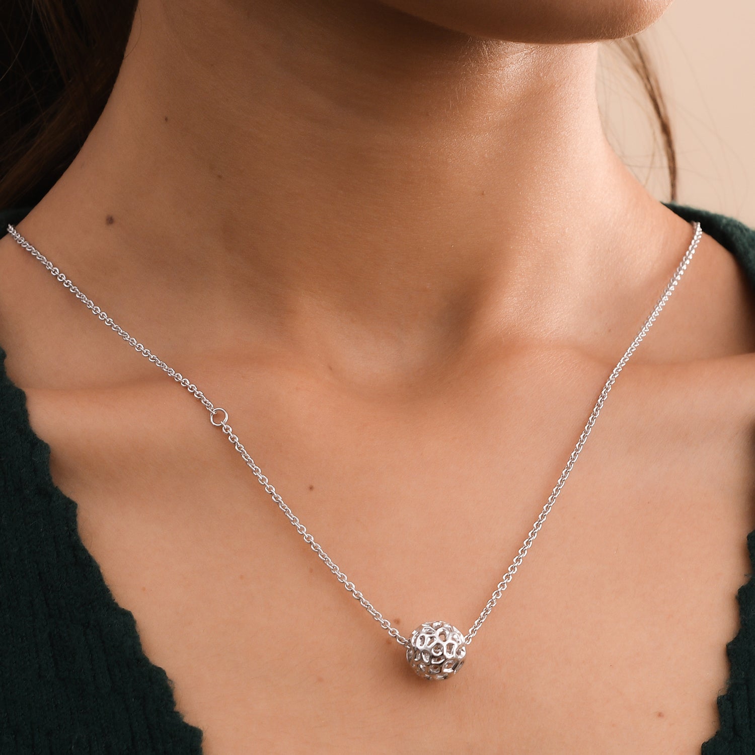 Ein zart aussehendes Schmuckstück, das wichtige Momente festhält. Dieser von Rachel Galley entworfene Anhänger zeigt ihr charakteristisches Gitterwerk in Globusform. Tragen Sie es als Charm an einem Armband Ihrer Wahl oder auch als Anhänger mit einer Kette!