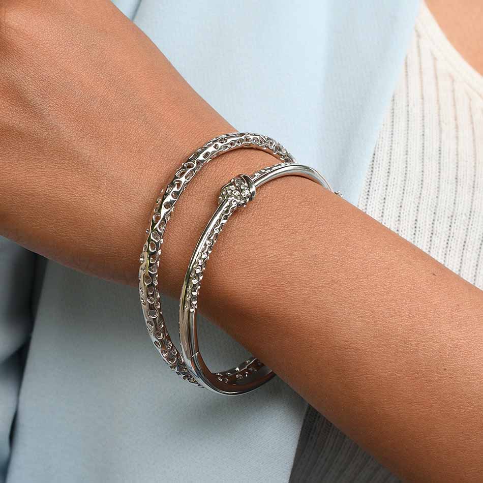 Diese Armreifen stellen einen komplizierten Liebesknoten dar und sind eine subtile Art, jemandem Liebe zu zeigen. Unglaubliche und feine Gitterdetails verleihen dem minimalistischen Alltagsdesign Struktur. Der einfach zu tragende Armreif zeigt sanfte Drehungen und Wendungen und stellt auf fantastische Weise das unzerbrechliche Band der Liebe dar.