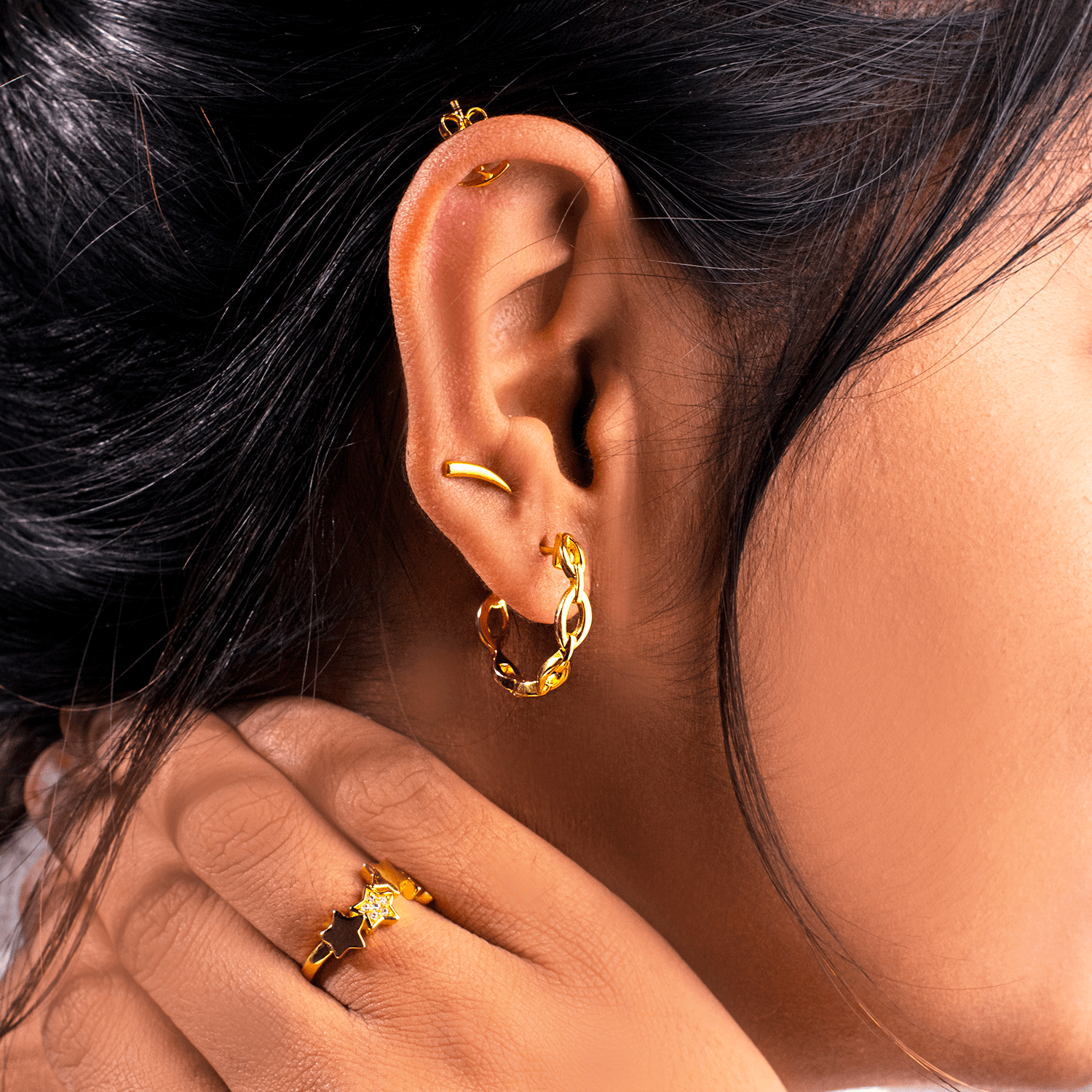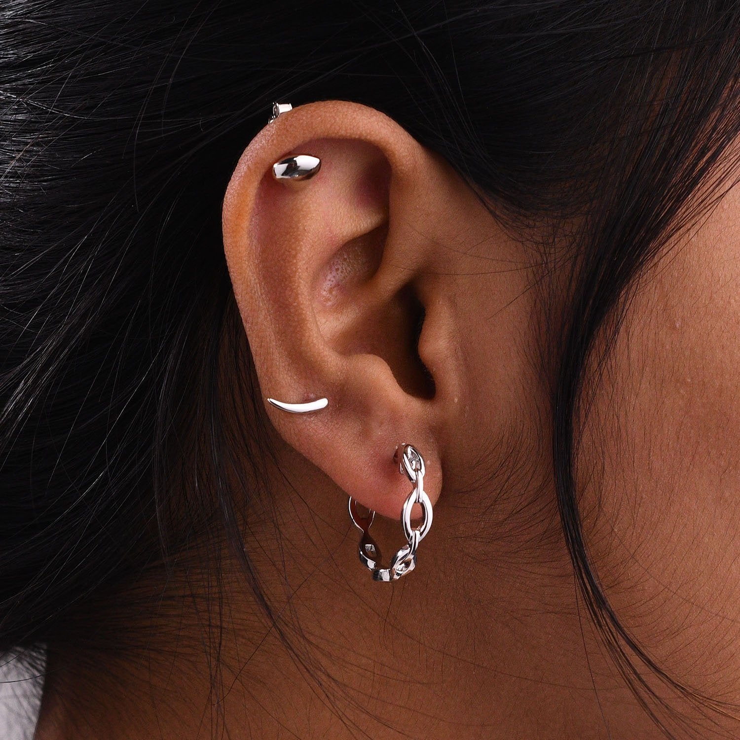 Ein ikonisches Paar Creolen, verziert mit unserem exklusiven Molto-Design . Marquiseförmige Glieder runden den Reifen ab und belasten Ihre Ohren superleicht. Diese Ohrringe können vom Schreibtisch bis zur Party getragen werden; Vielseitig kombinierbar mit all Ihren Looks.