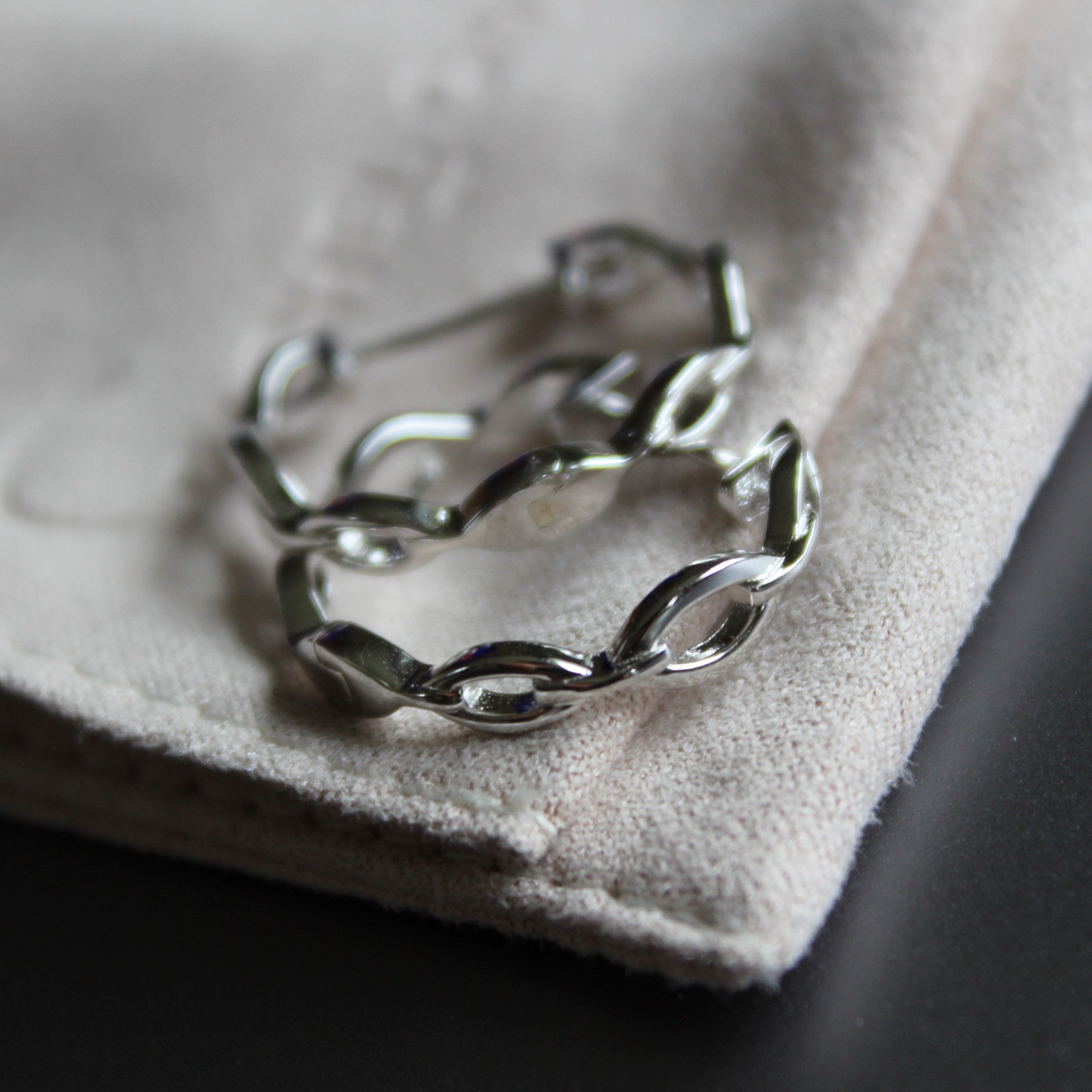 Gesichert mit einem einfachen Klickverschluss. Die Reifen sind aus Sterlingsilber gefertigt.