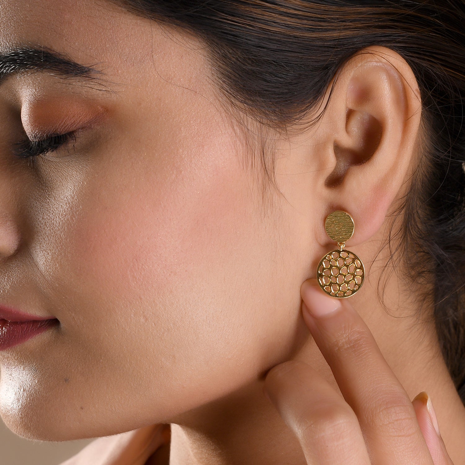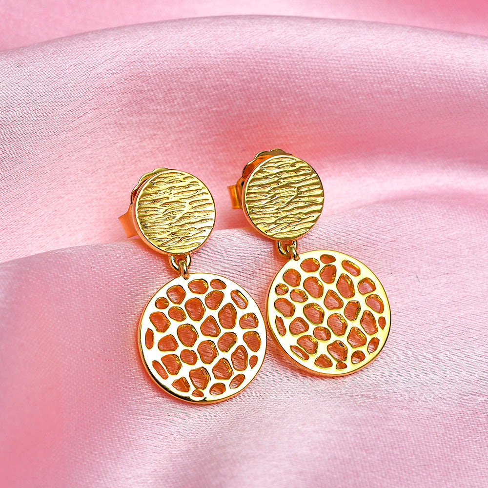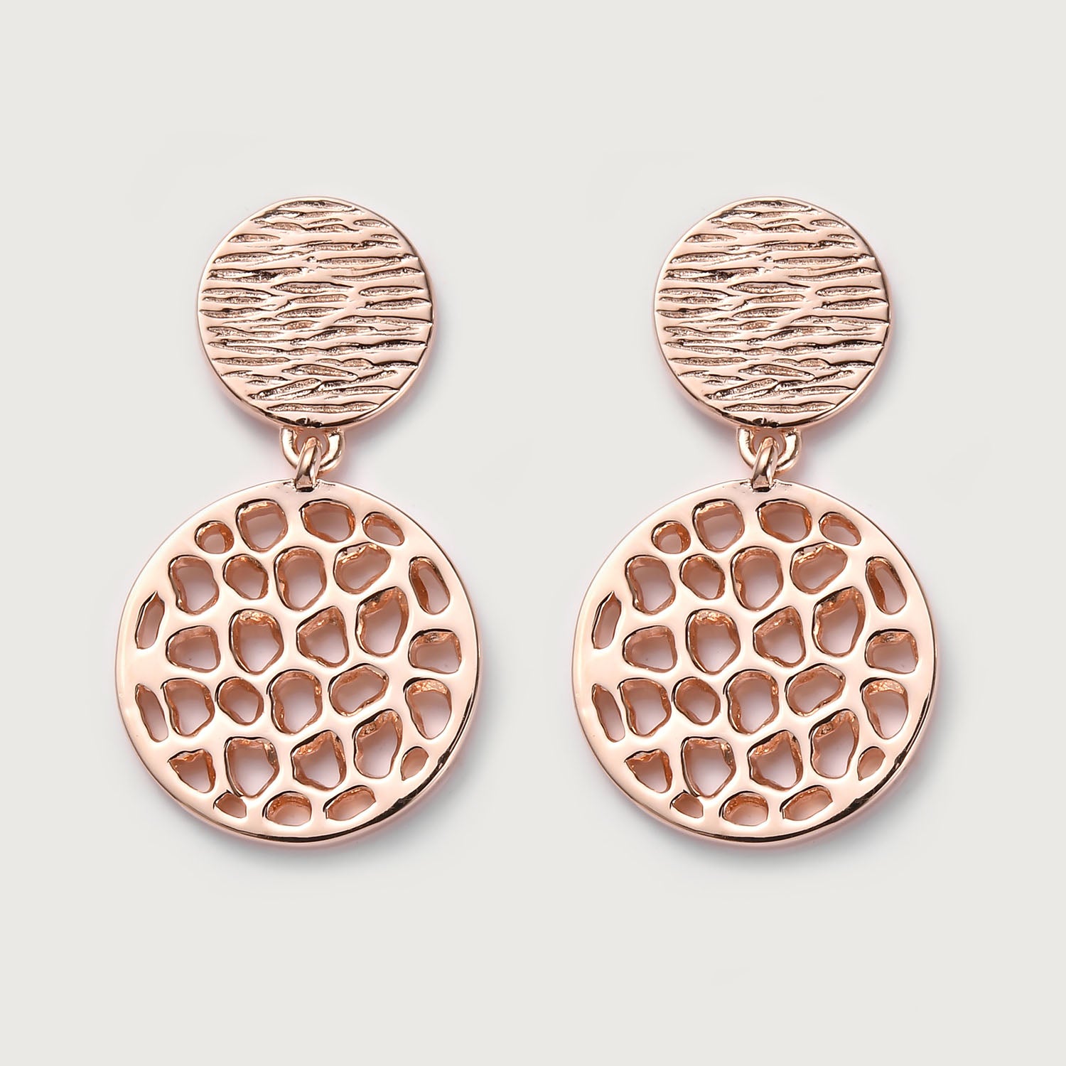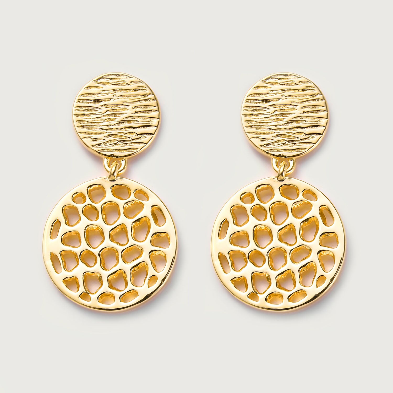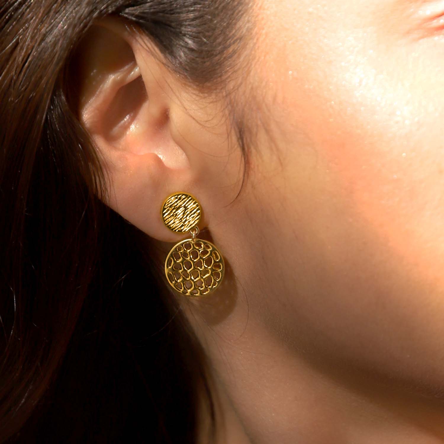 Ein eher einfaches und dennoch ikonisches Paar Ohrhänger. Der Schaft der Ohrringe zeichnet sich durch die ruhige Textur von Wellen aus, während der Tropfen des Designs hervorragend zu Rachels charakteristischem Gitterdesign passt.