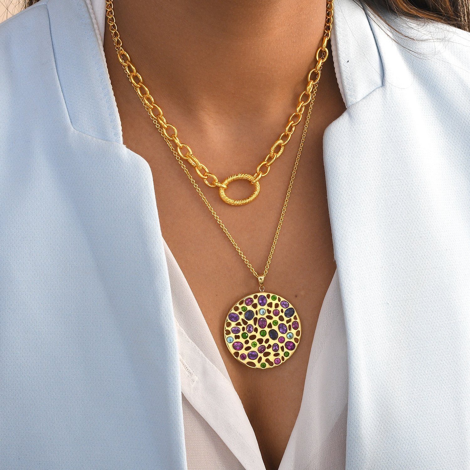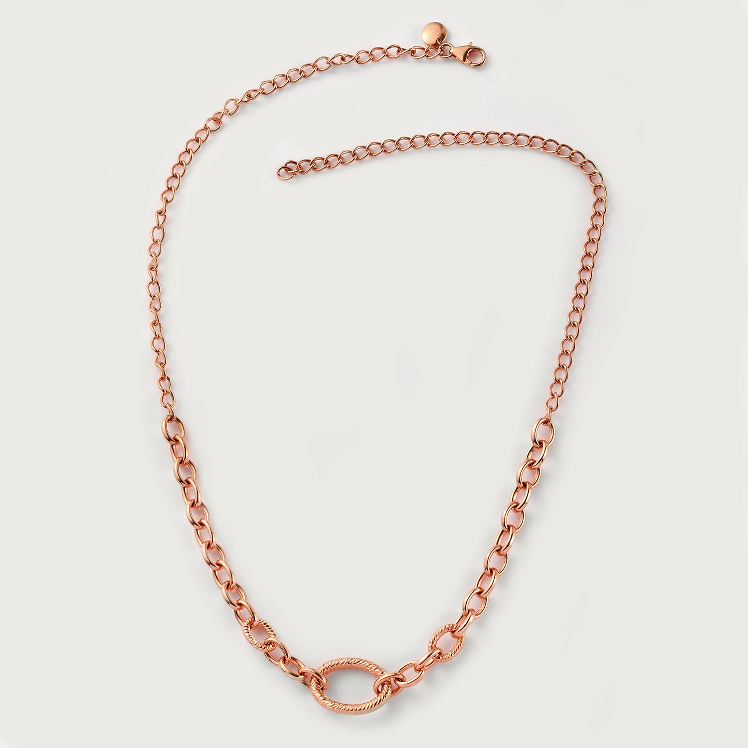 Eine auffällige neue Halskette aus der Ocean Wave-Kollektion mit tragbaren Gliedern in 16, 18 und 20 Zoll. Eine mit Wellen des Ozeans durchzogene zentrale Schleife strahlt eine bemerkenswerte Anziehungskraft aus. Sie ist eine zeitgemäße Variante der Gliederkette und kann allein oder mit anderen Layering-Halsketten getragen werden.