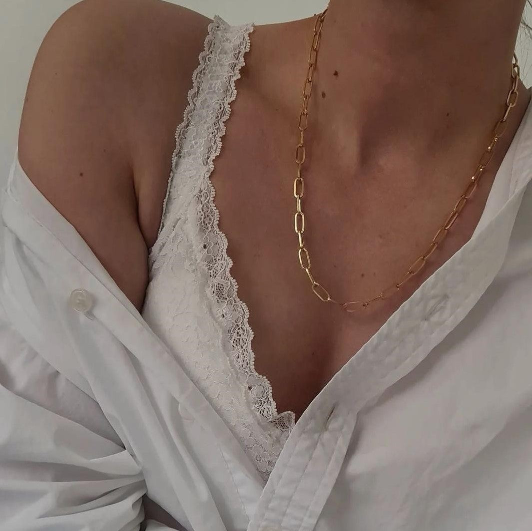 Das zeitlose Paperlink-Design ist sowohl elegant als auch klassisch. Das Vogue-Magazin bezeichnete Paperlink-Designs als „Must-Have-Stück dieses Jahrzehnts“. Ein perfektes Accessoire für jeden Tag und jeden Look. Diese Halskette verfügt über glatte Glieder, die Ihren Ausschnitt perfekt formen. Tragen Sie es am besten mit anderen Layering-Halsketten .
