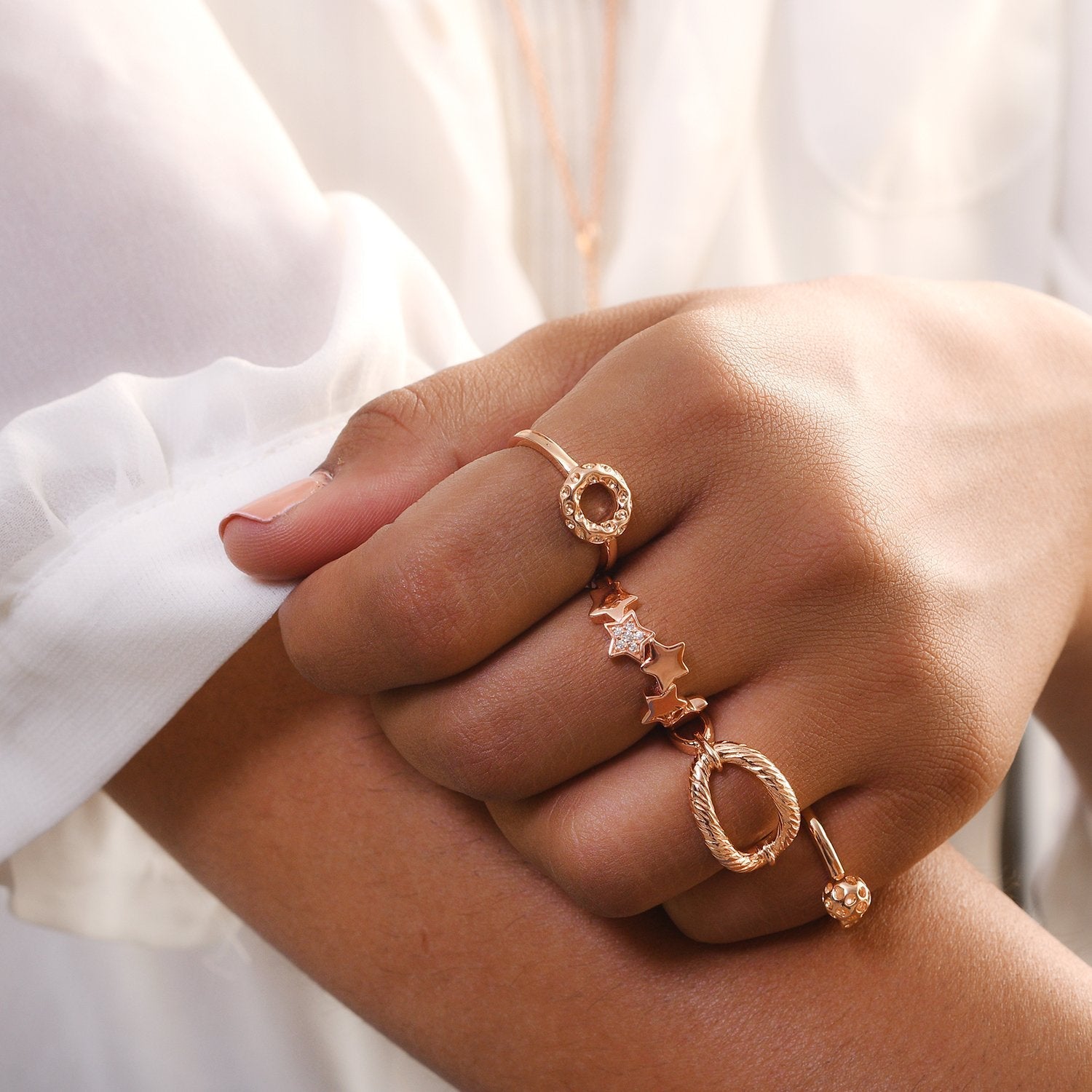 Suchen Sie einen Statement-Maker? Tragen Sie mit diesem charakteristischen Bandring einen Stern an Ihren Fingern. Dieser mit natürlichen, echten Zirkonen besetzte Bandring zeigt Modestars, die systematisch und chaotisch aufgereiht sind. Ein funkelndes Element passt wunderbar zum Glanz. Am besten in Kombination mit anderen Stapelringen .