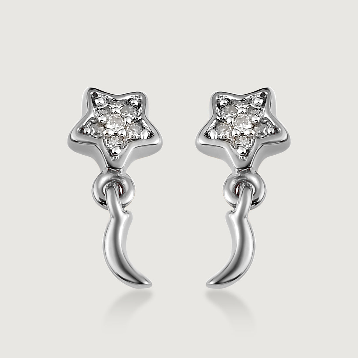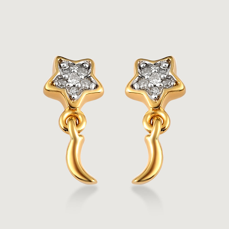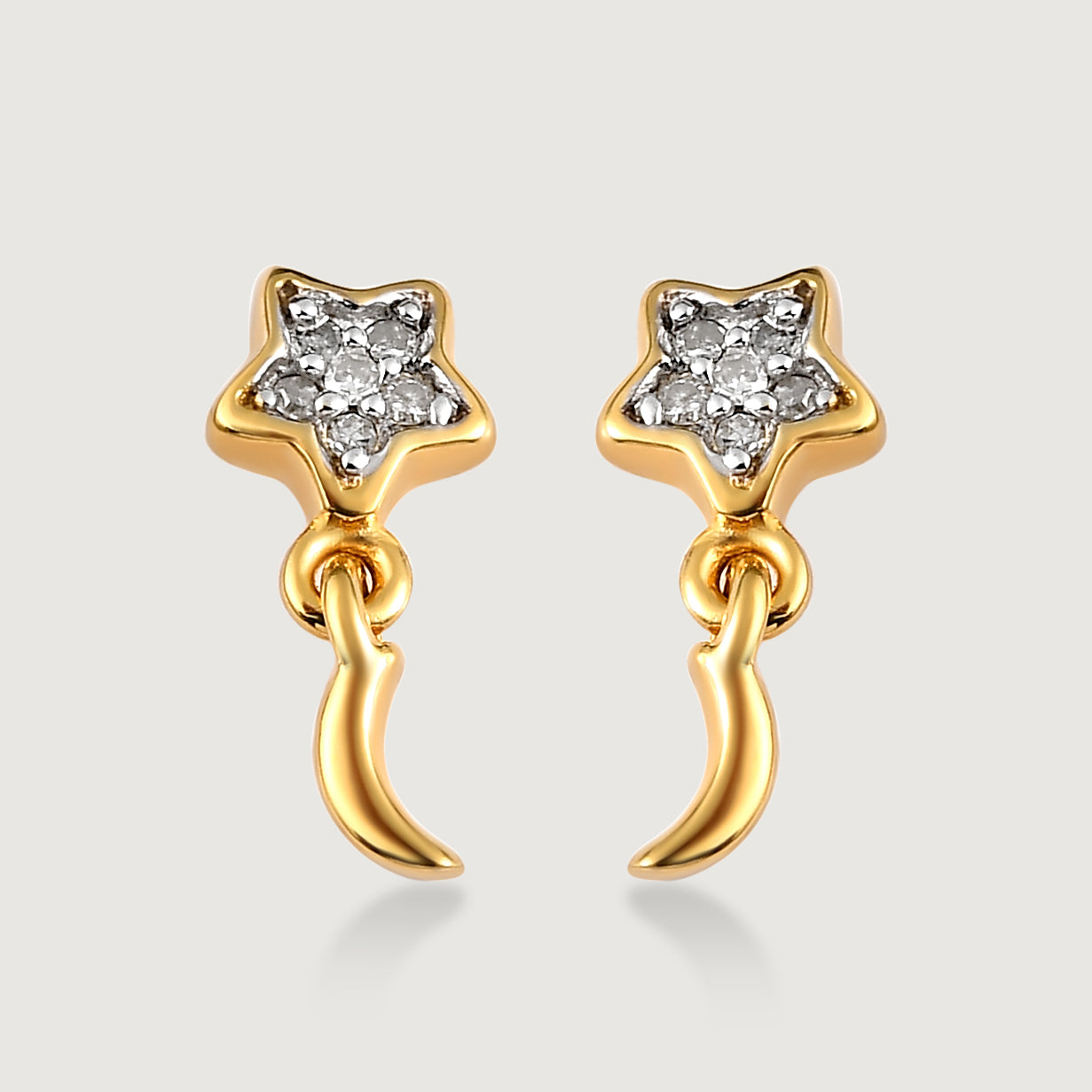 Verleihen Sie Ihrem Look einen Hauch himmlischer Eleganz mit diesen wunderschönen Sternen- und Mond-Diamant-Ohrhängern. Sie bestehen aus 18-karätigem Vermeil-Gold und bestehen aus 12 funkelnden Diamanten. Sie eignen sich perfekt, um jedem Ensemble einen Hauch von Eleganz zu verleihen. Diese göttlichen Ohrringe werden mit sicheren Druckverschlüssen gesichert.