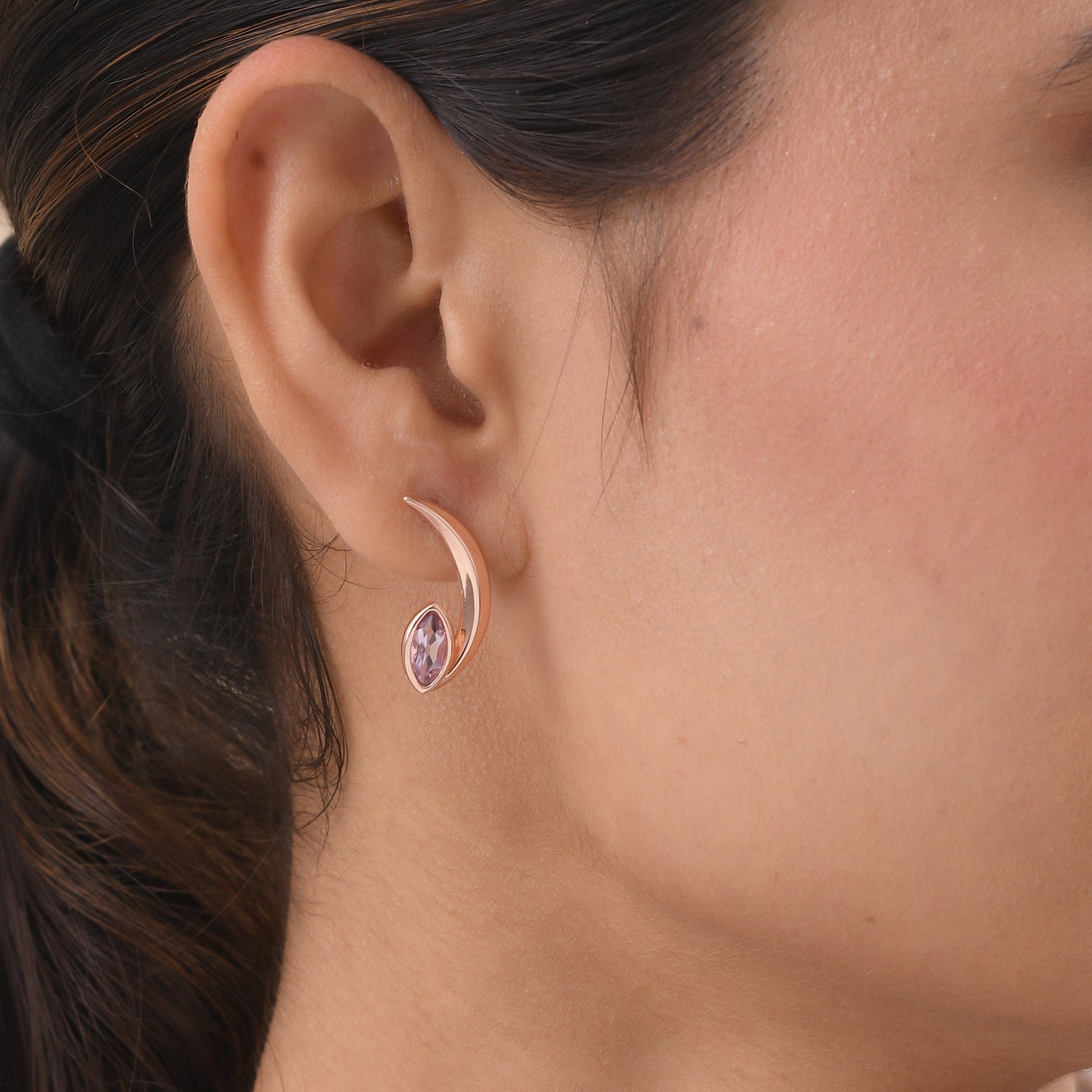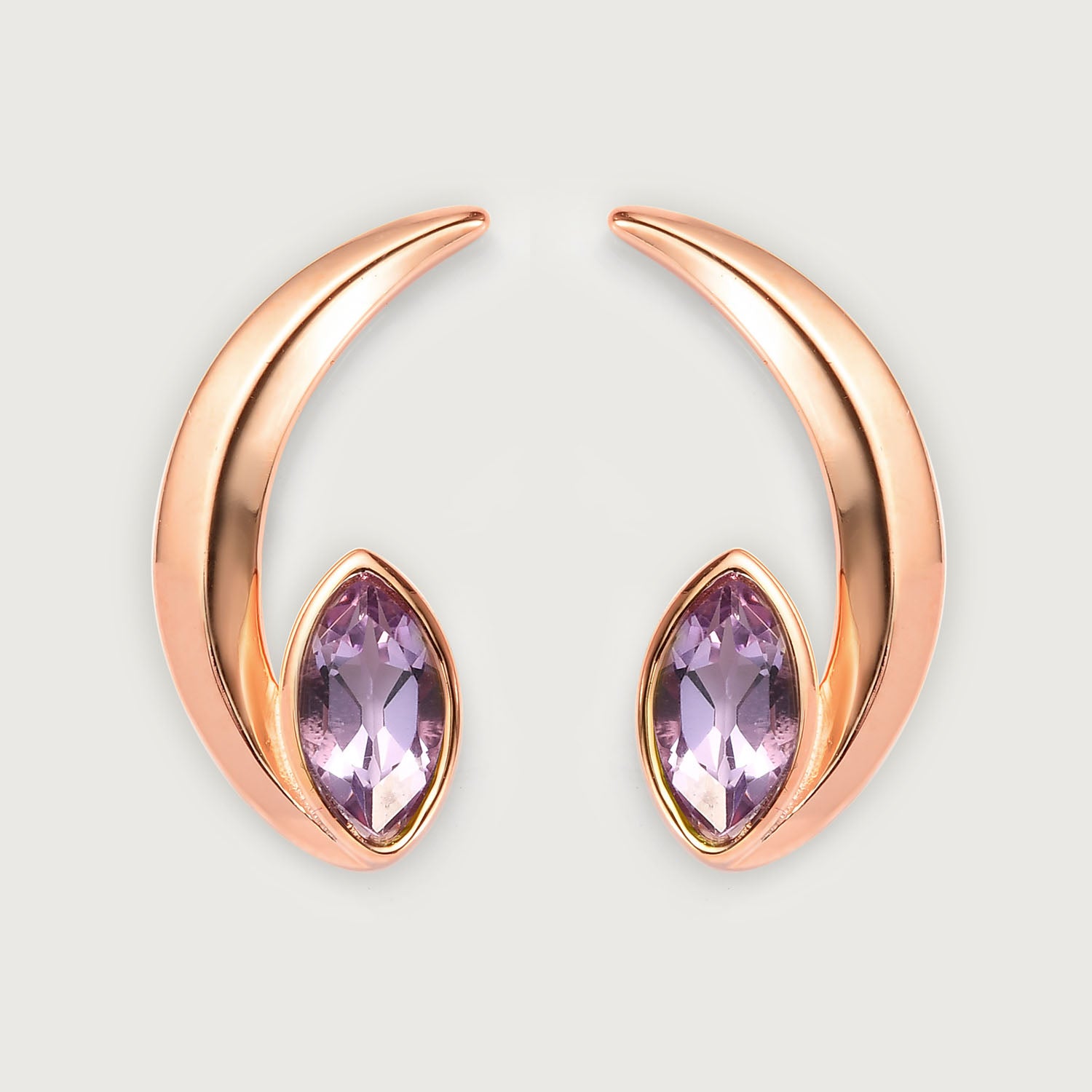 Bequeme, zierliche Ohrstecker mit Rachels wunderschöner Mondsichelform. Die Basis dieser Ohrstecker bildet einen rosafarbenen Amethyst-Stein im Marquise-Schliff, der in der Form eines Halbmondes gehalten wird.