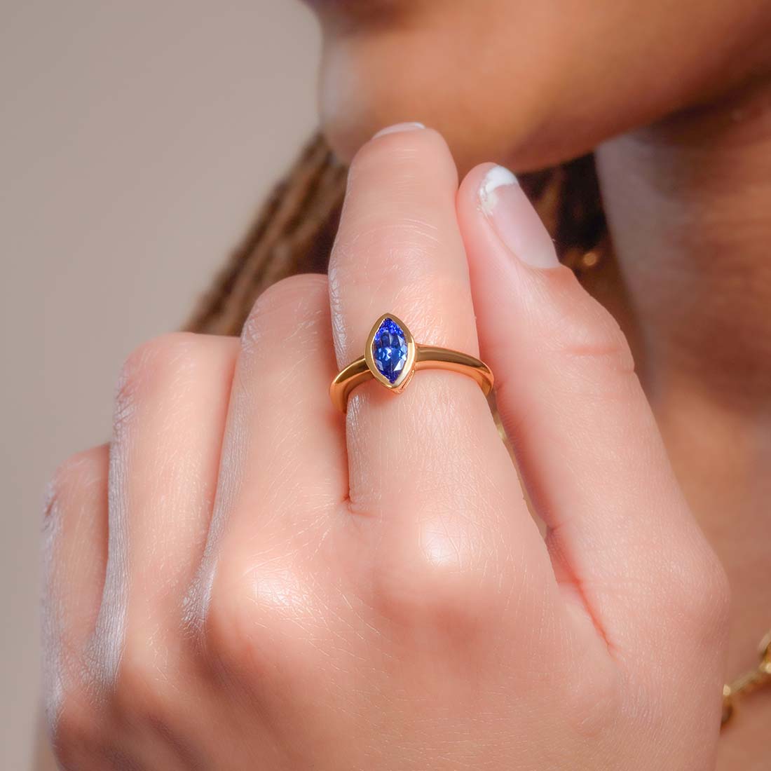 Mit einem vom funkelnden Nachthimmel inspirierten Erscheinungsbild ist dieser Surf Moon-Ring mit einem mondsichelförmigen Tansanitstein ausgestattet. Der Facettenschliff sorgt für ein hübsches Funkeln und ist in eine sichere Zargenfassung eingefasst. Tragen Sie ihn allein oder in Kombination mit anderen Stapelringen , er ist wie gemacht, um ein Statement zu setzen!