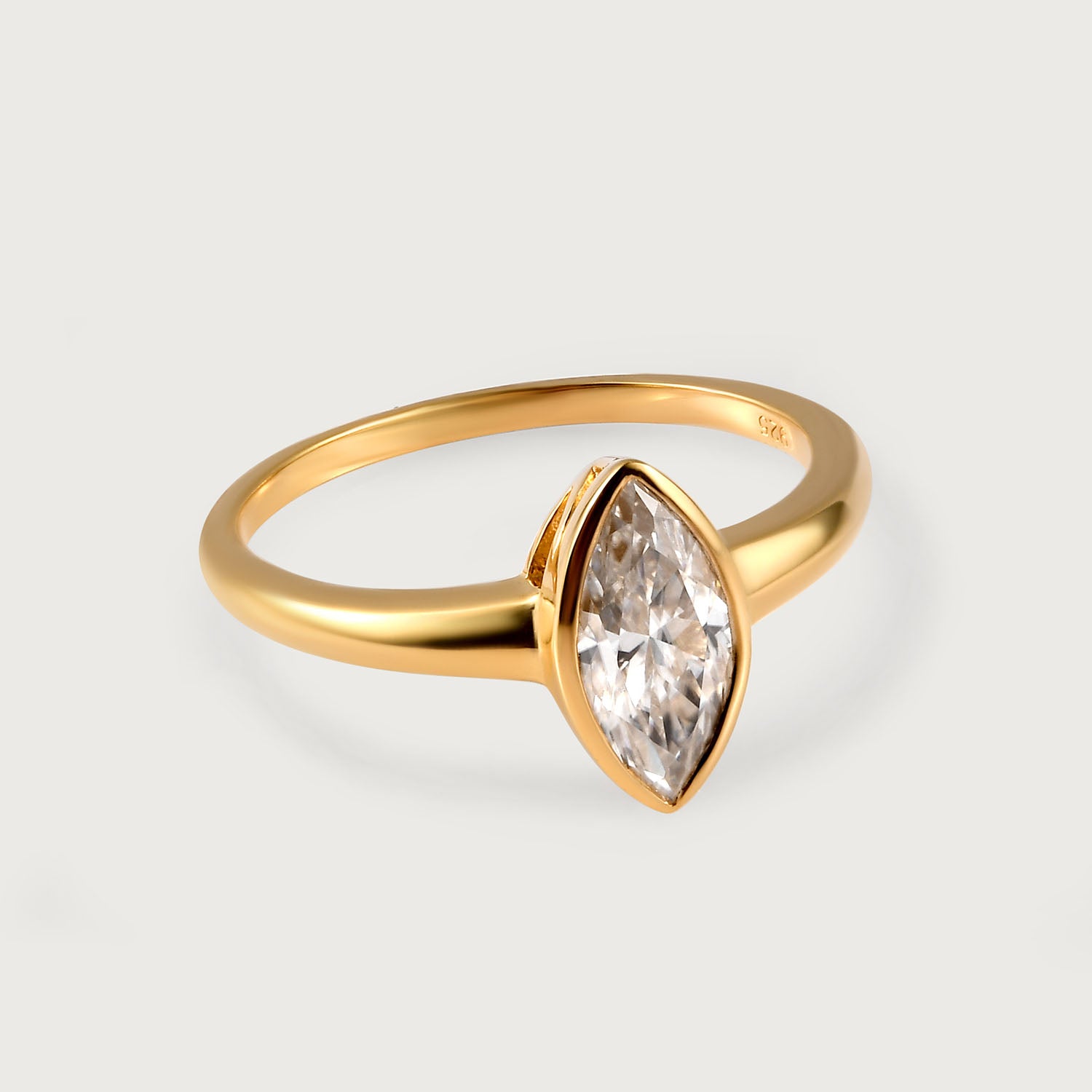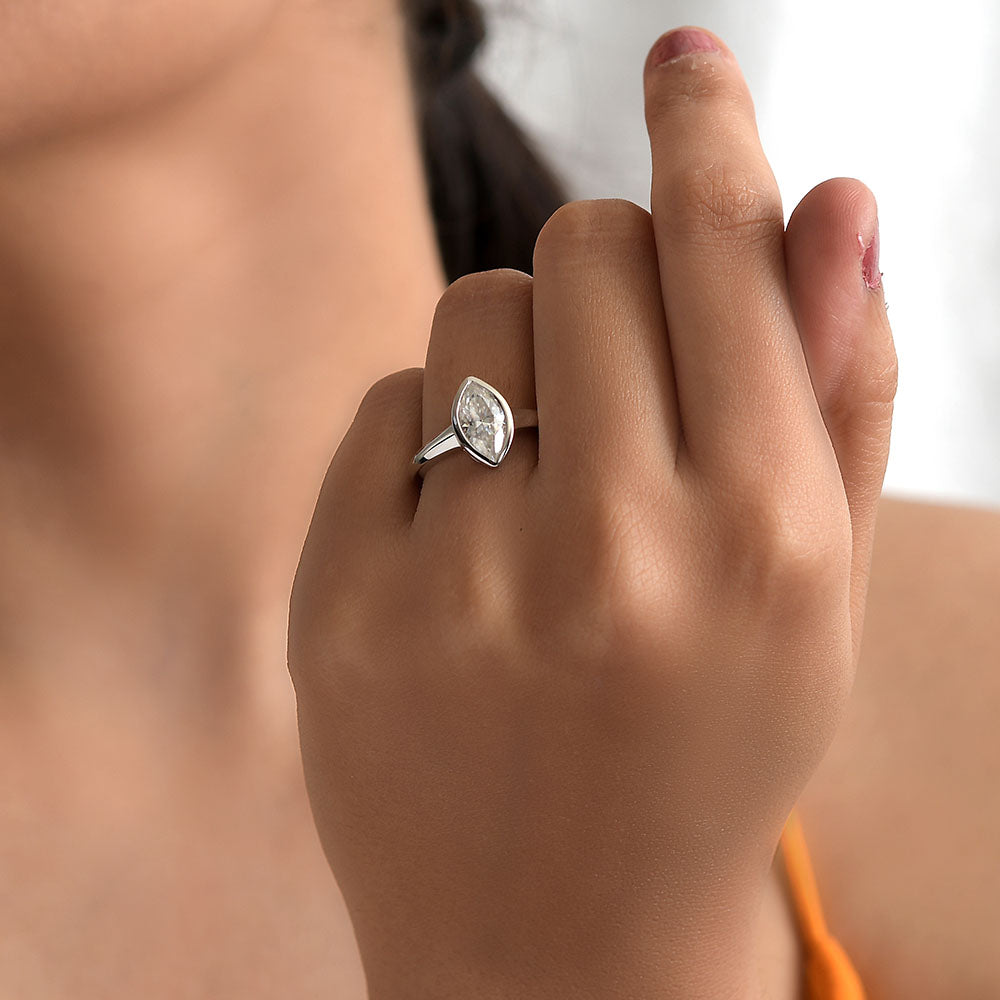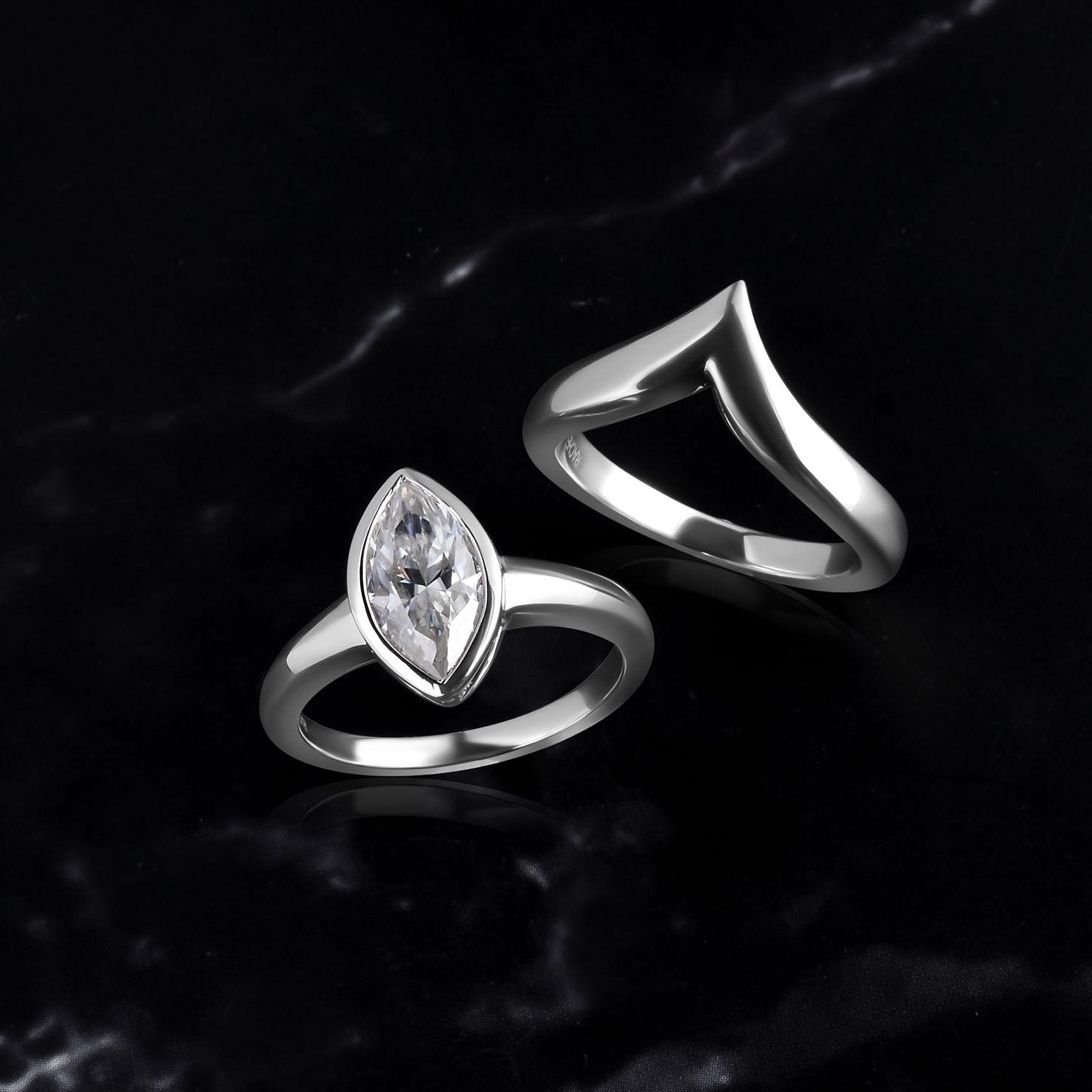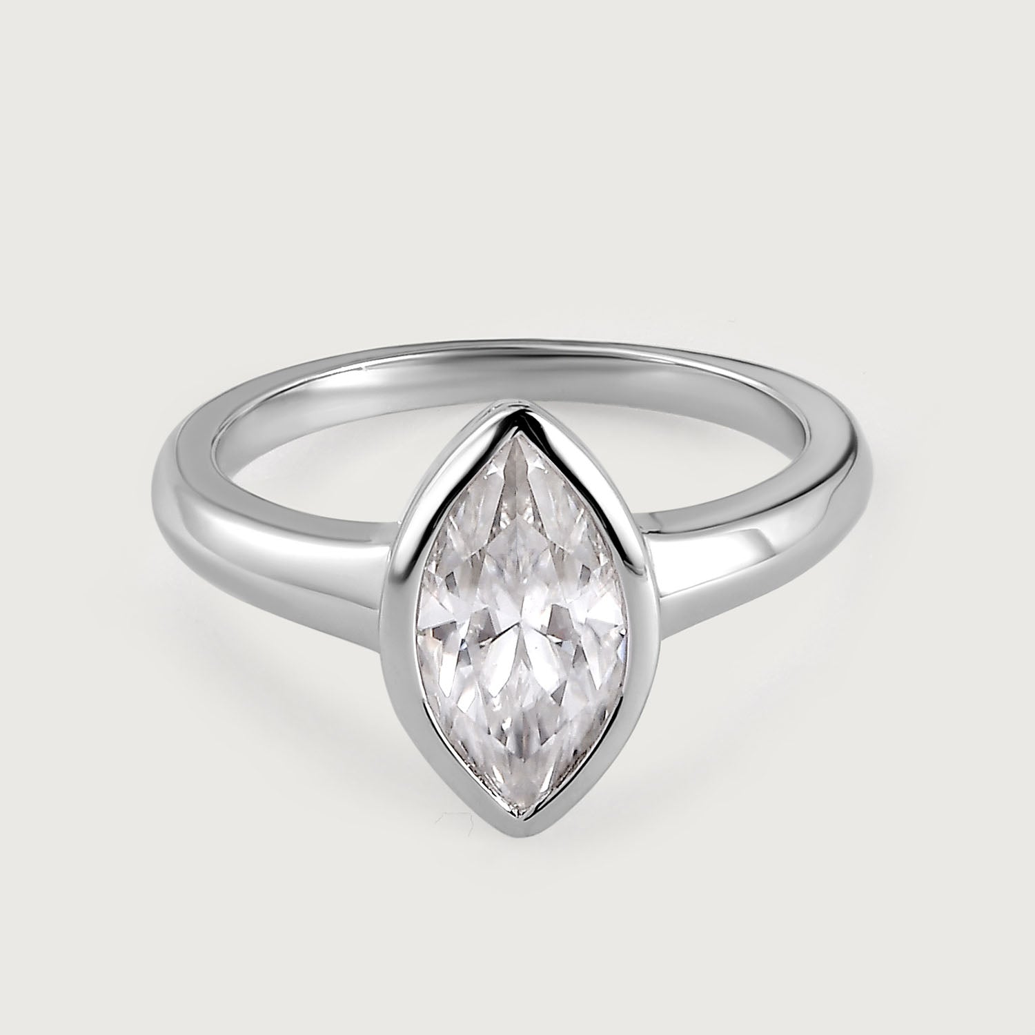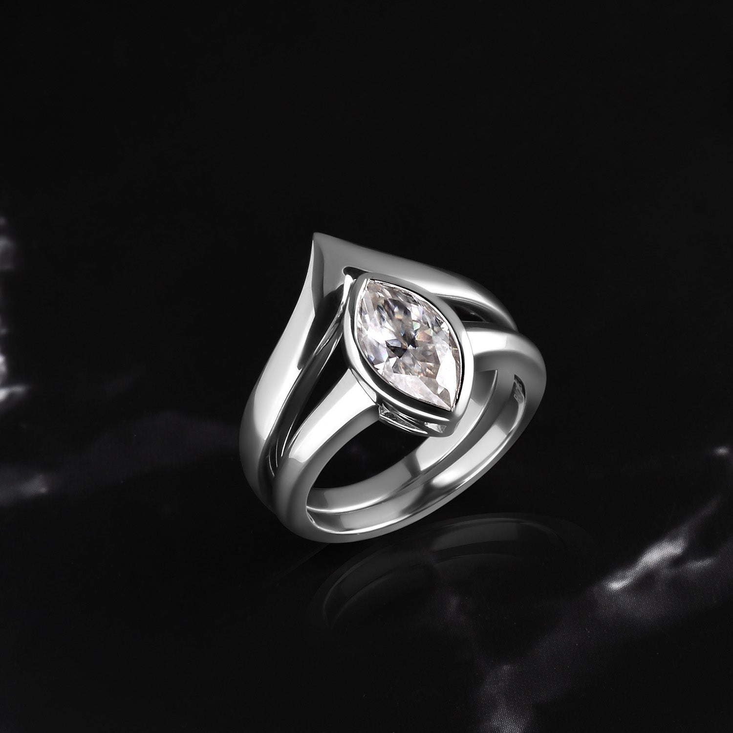 Besetzt mit 1,5 Karat Moissanit im Marquise-Schliff
