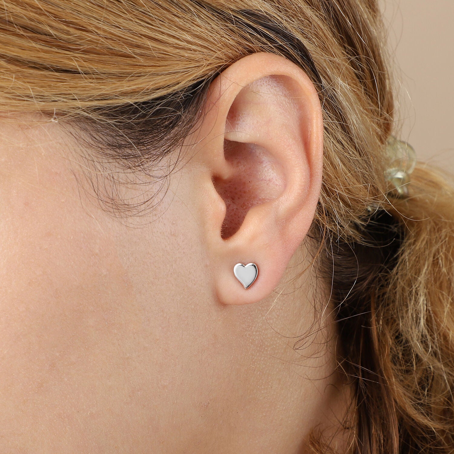 Herzförmige Ohrstecker mit glatter Oberfläche, die zu all Ihren Looks passen. Kleine Ohrstecker, die Ihren Alltagslook mit Vielseitigkeit abrunden. Kombinieren Sie es mit anderen Stapelohrringen, um Ihren ikonischen Look zu kreieren.