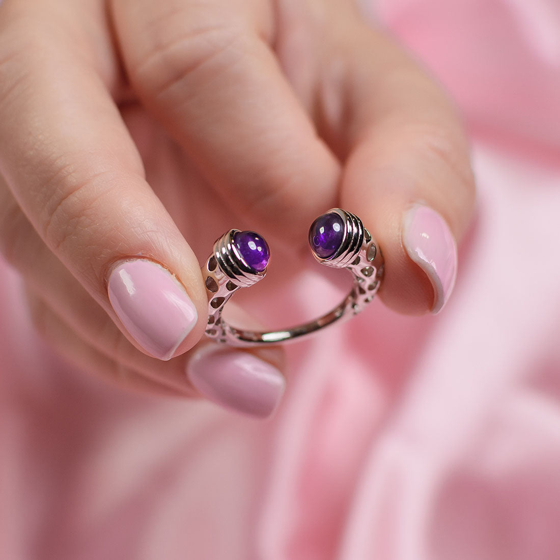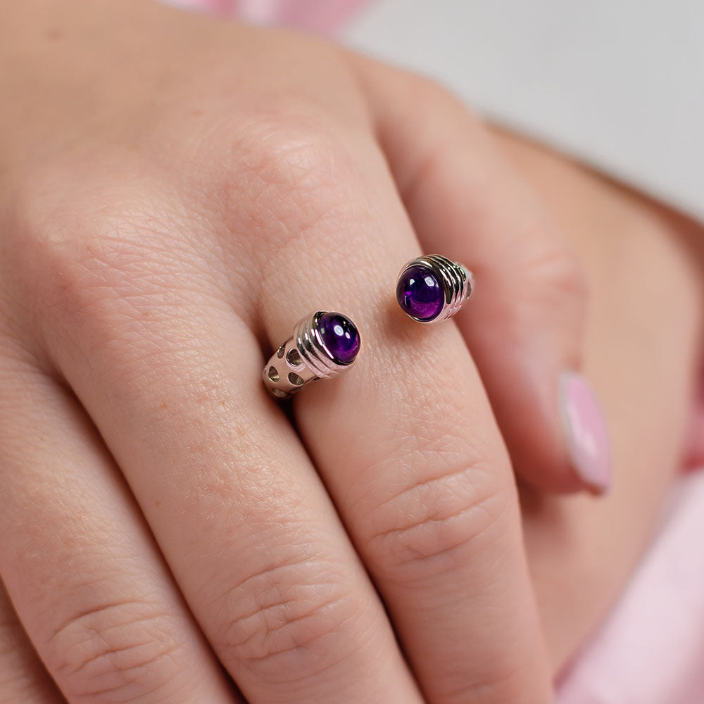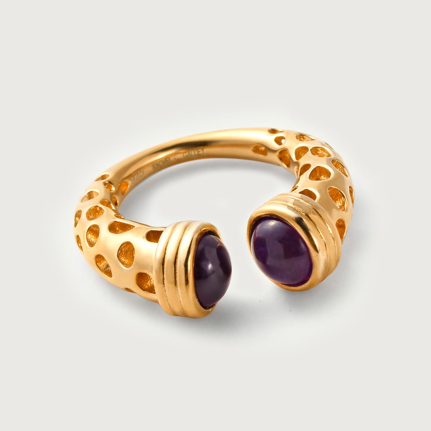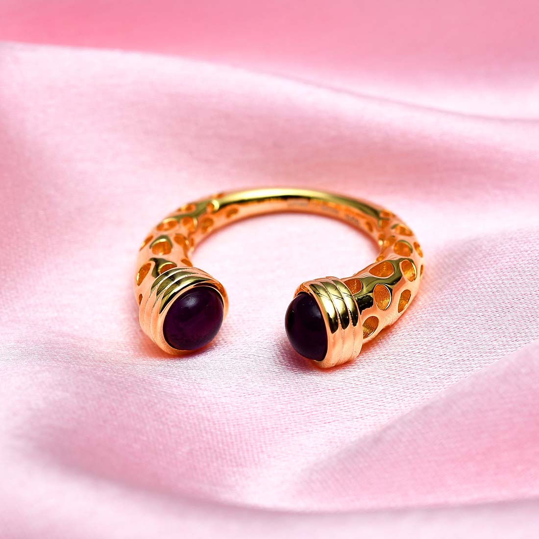 Rachel's iconic design studded with real amethyst! A wrap design with open ends, this ring features her signature allegro lattice design. A bold ring that can be paired beautifully well with rest of the Allegro Collection.