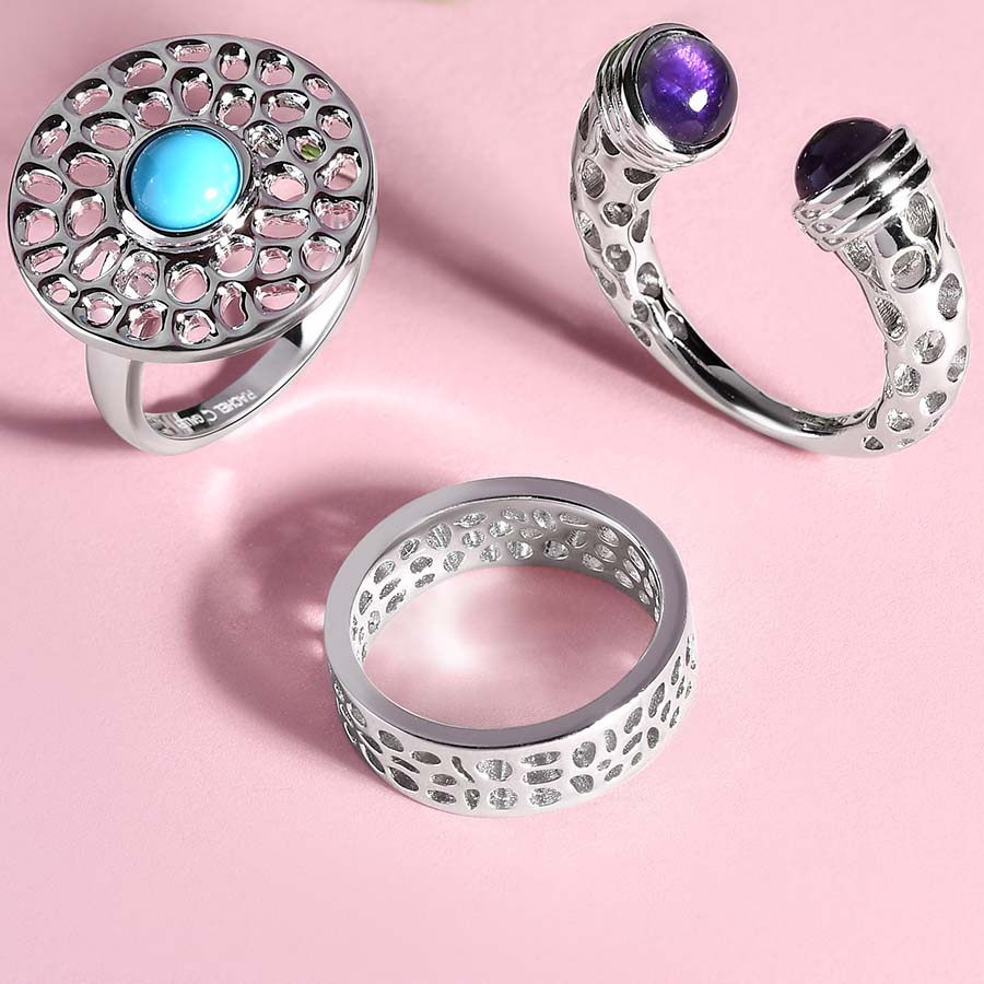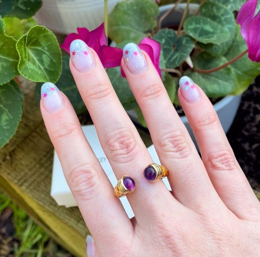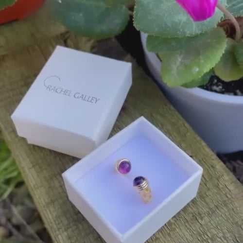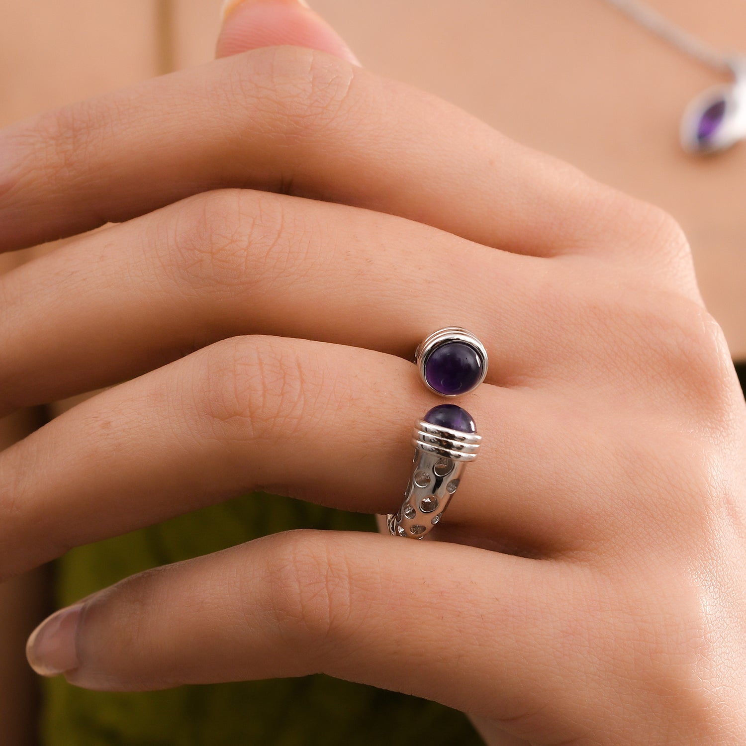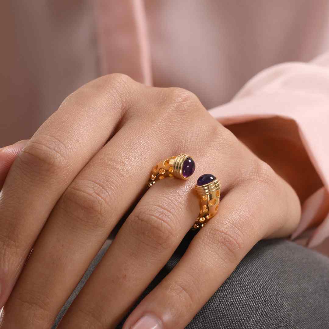 Rachel's iconic design studded with real amethyst! A wrap design with open ends, this ring features her signature allegro lattice design. A bold ring that can be paired beautifully well with rest of the Allegro Collection.