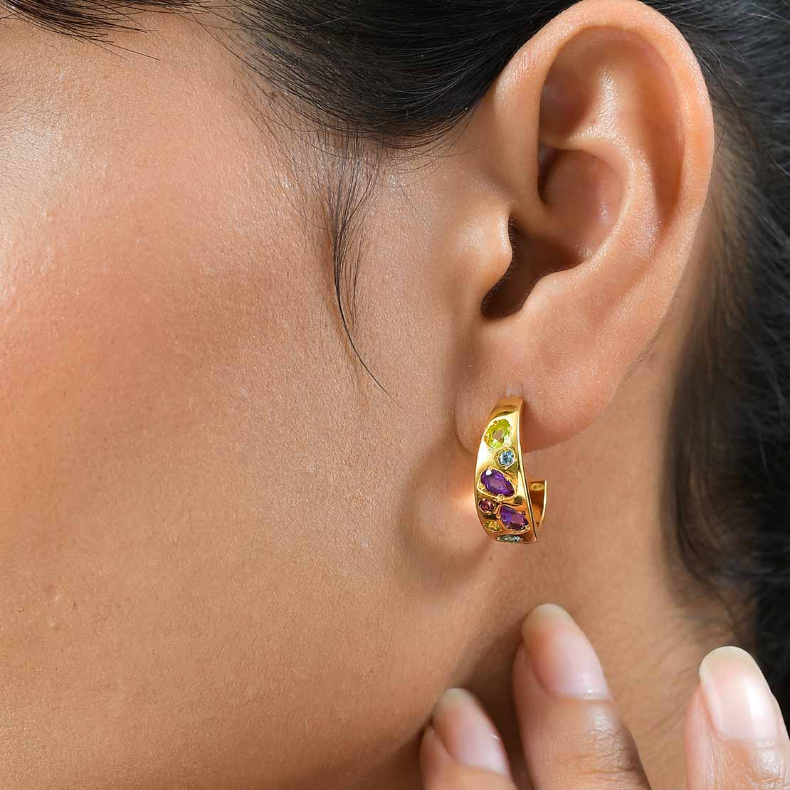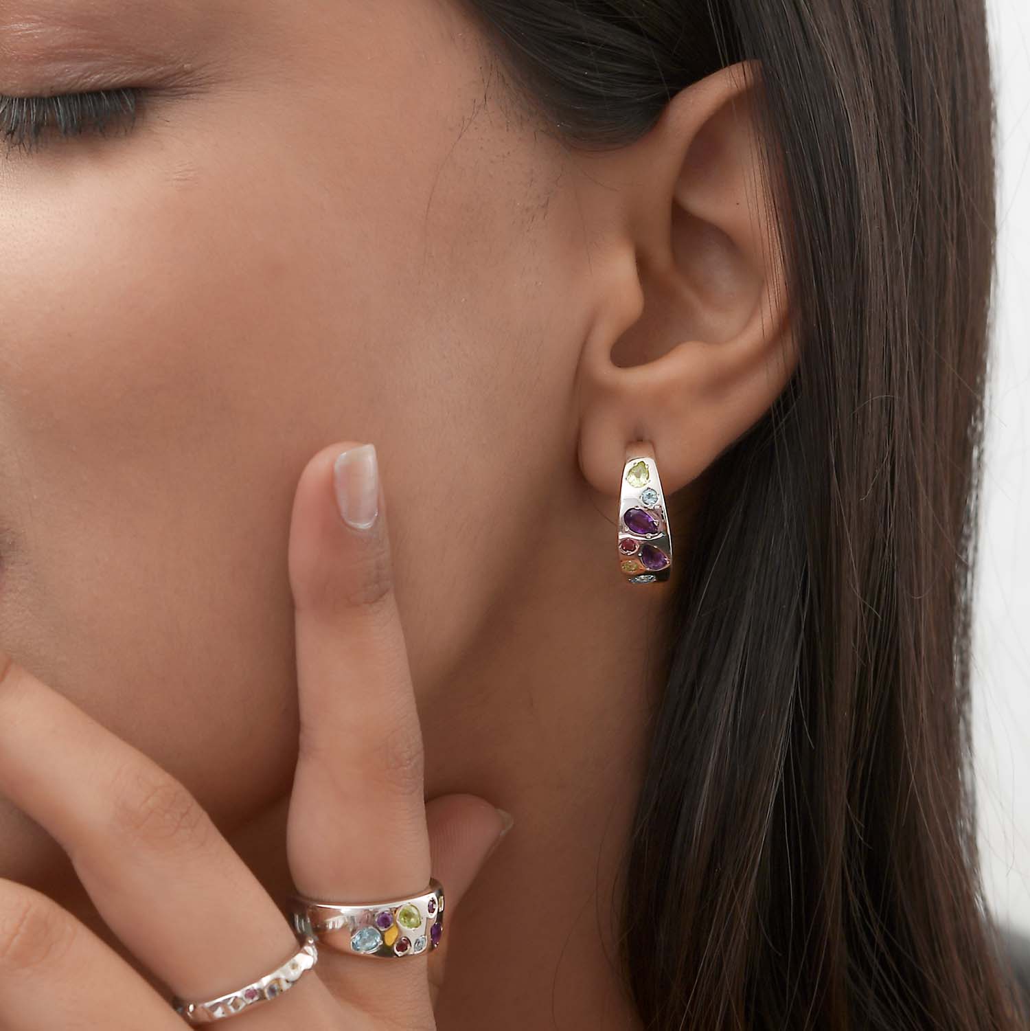 Introducing a phenomenal new collection so sweet, that it'd give you a sugar rush! Shop our Candy Multi Gemstone Huggie Hoops, studded with AAA grade natural genuine stones, such as Rhodolite garnet, Swiss blue topaz, peridot, and African amethyst.
