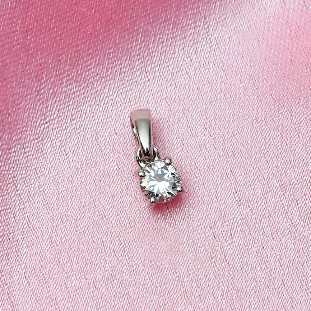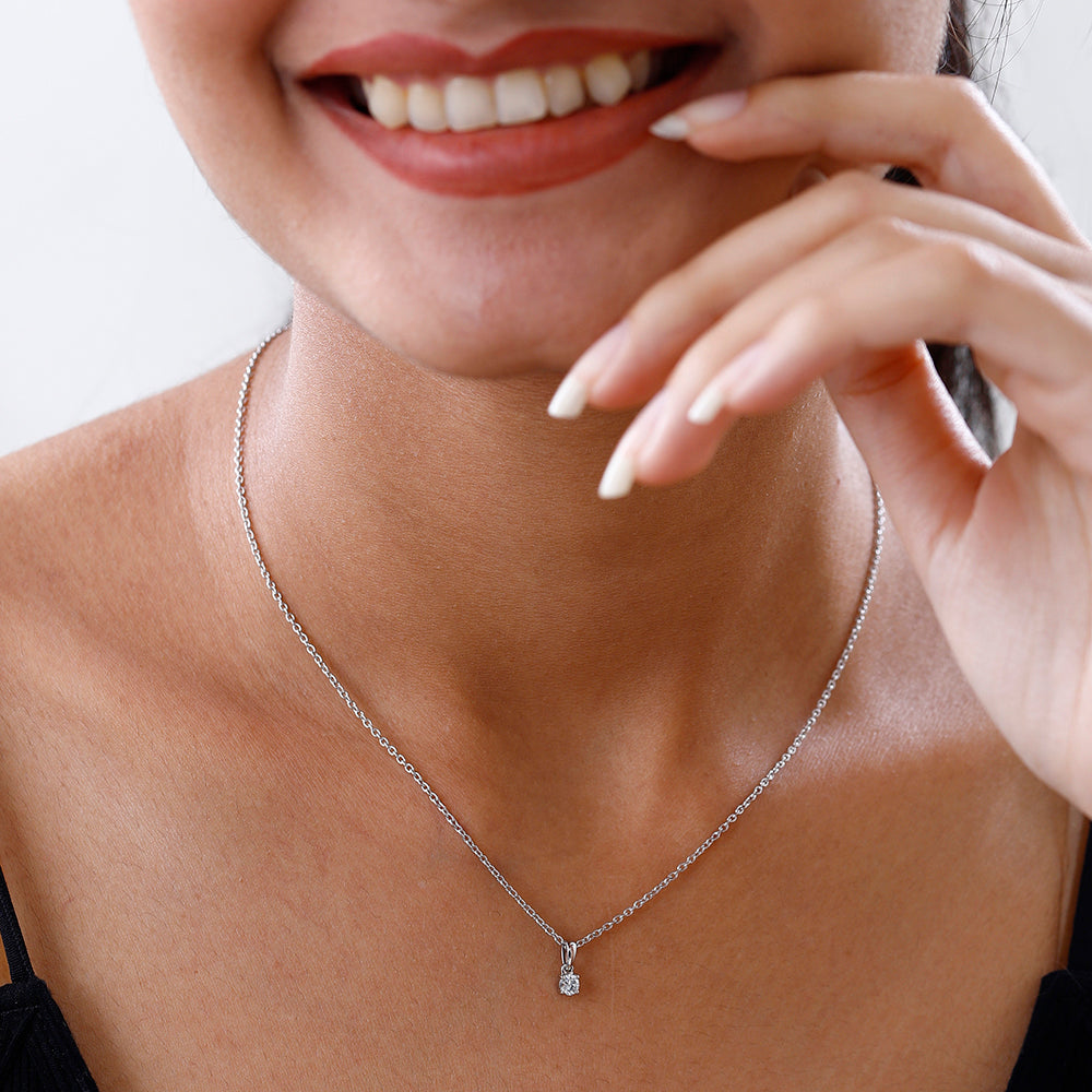 A timeless testament to elegance, the Versa Diamond Solitaire Pendant in Platinum is a piece of exquisite jewelry. Masterfully crafted with a single 0.18 carat diamond and 1.5 gms of platinum, its glimmering beauty will add a luxurious touch to any ensemble. Elevate your style with this classic solitaire pendant.