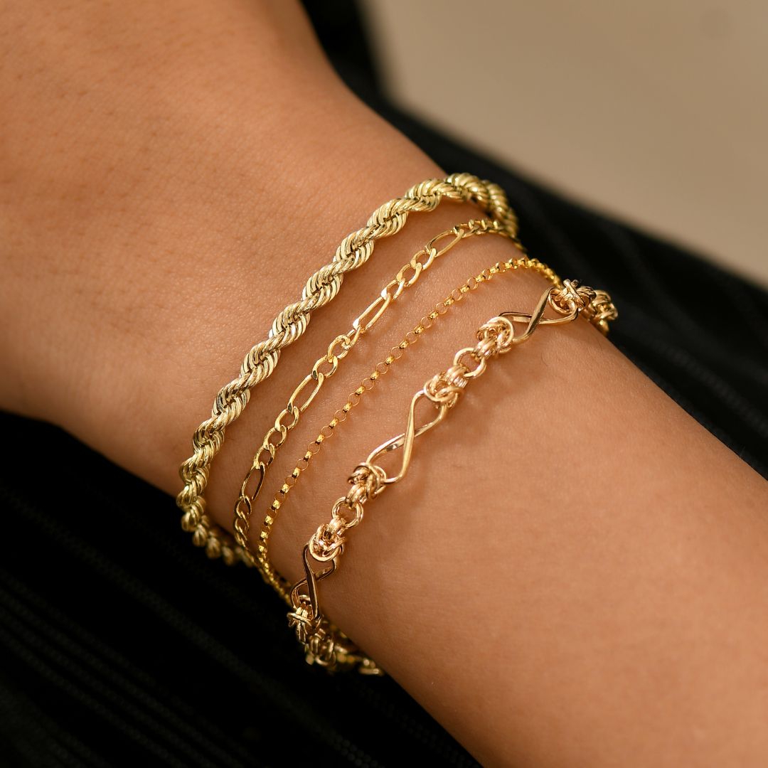 Figaro Gold Bracelet + Figaro Gold Chain Necklace