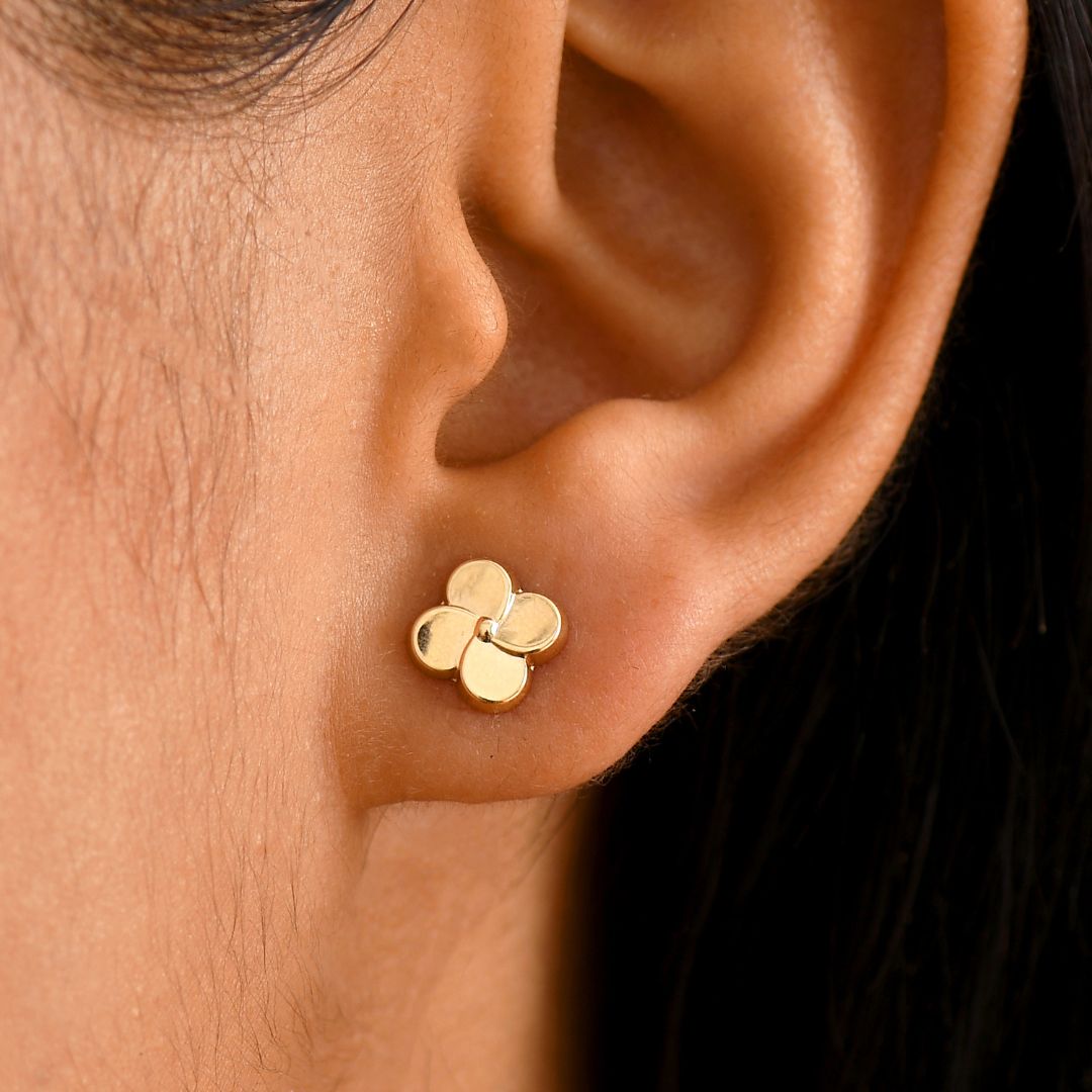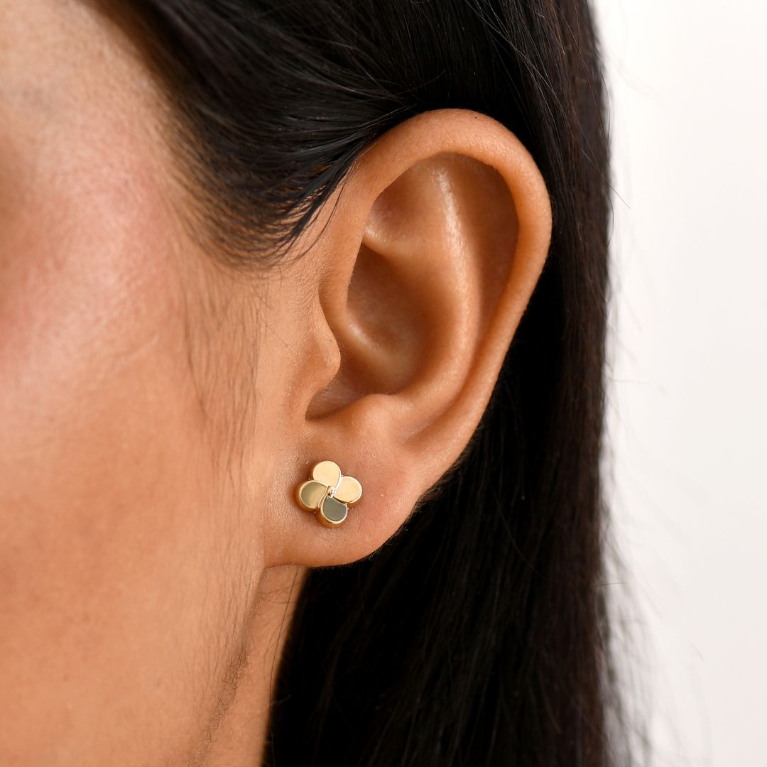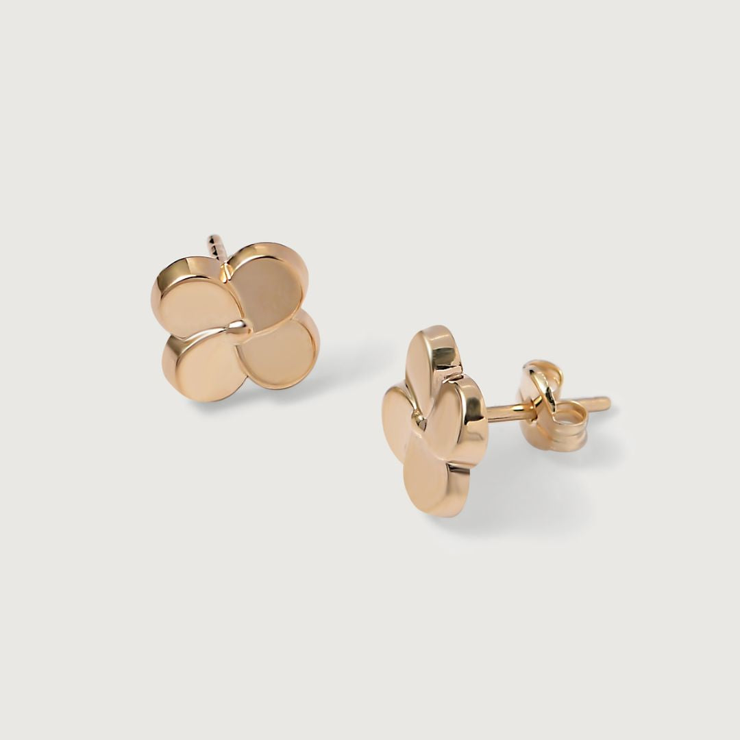 Golden Bloom Studs: 7.5mm floral design | Post fitting | 0.47g | 9K Yellow Gold