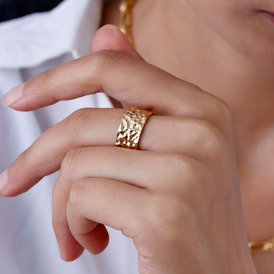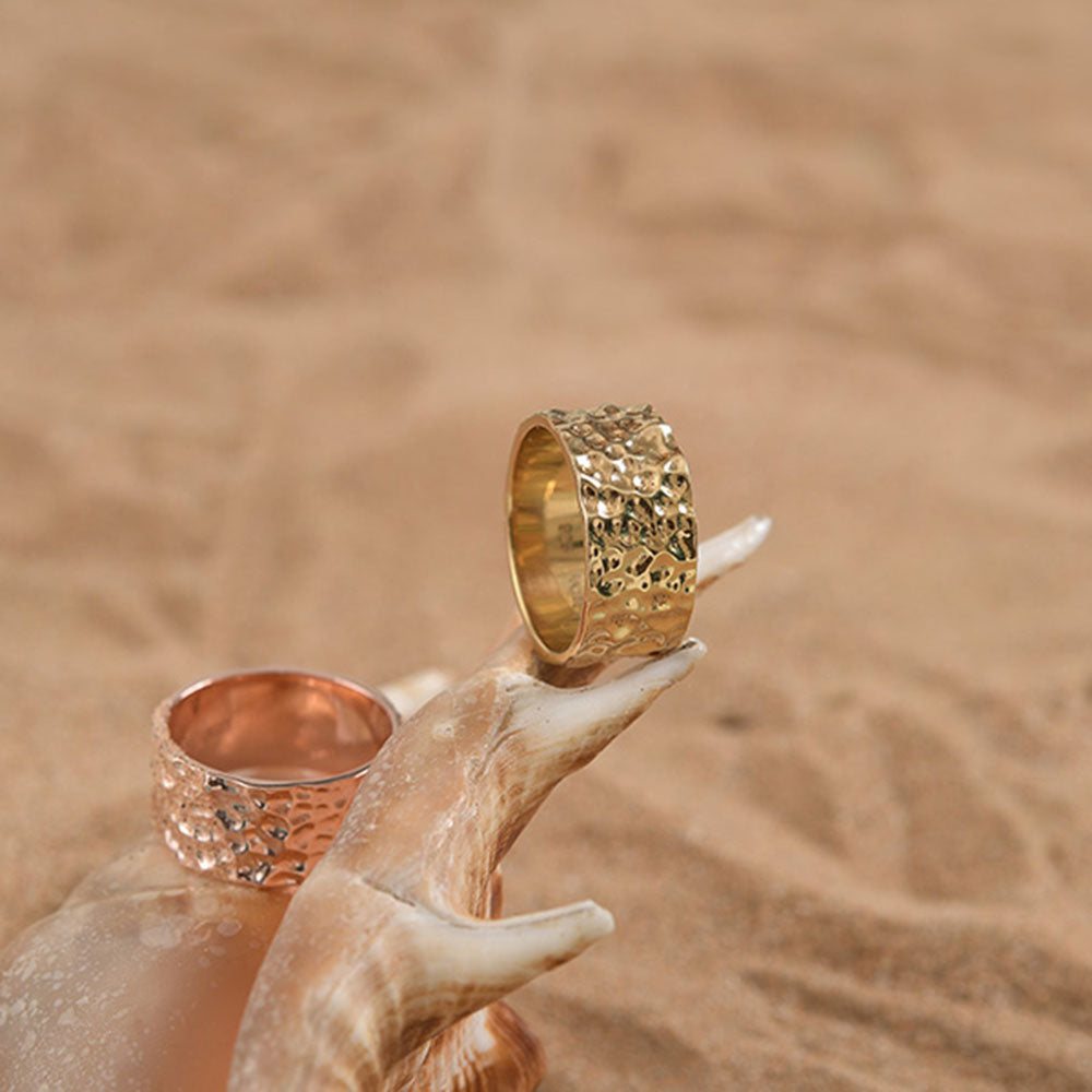 Inspired by the strength and elegance of Greek armour, this bold statement ring is the latest addition to our Grecian Collection. Featuring a hand-hammered texture for a raw, rustic appeal, its chunky 1.1 cm width ensures it stands out as a true conversation piece. Designed to be worn alone for maximum impact or stacked for a layered look, this ring embodies confidence and power.