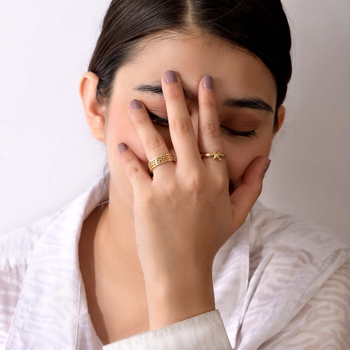 From simple bands to gemstone-studded signature designs, Rachel has many styles in her rings range. Her signature jewellery for women is aimed at every day wear, so we bring you options that can be styled with all your looks. Discover our simple plain metal designs or sparkle in AAA studded natural genuine gemstones, the choices are plenty.