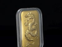 Designed as a decorative and collectible gold piece, it showcases exceptional detailing, with finely defined scales and flowing contours enhanced by a radiant, high-polish gold finish. Its elegant rectangular form and compact size make it perfect for display, gifting, or adding to a distinguished gold collection.