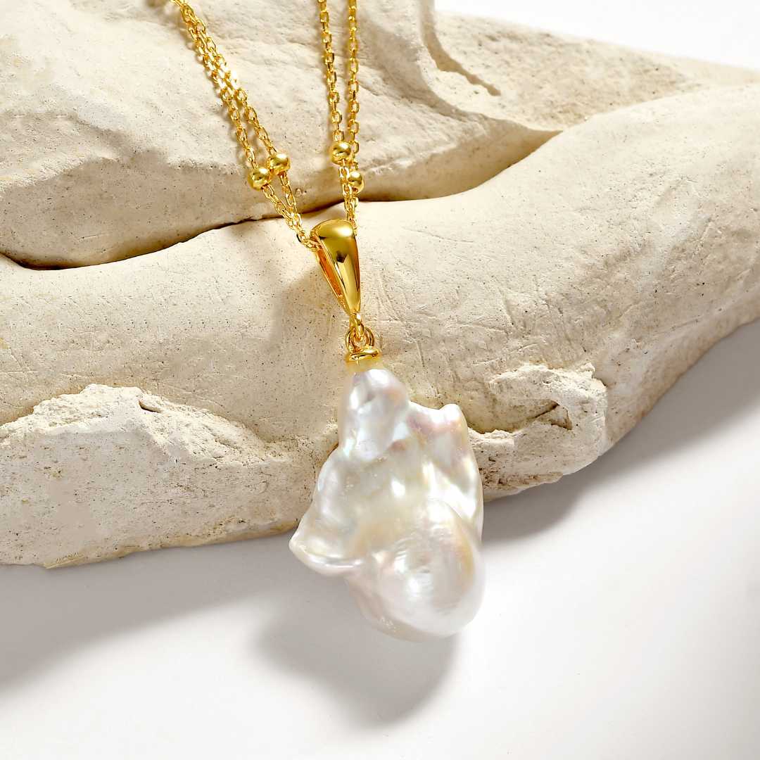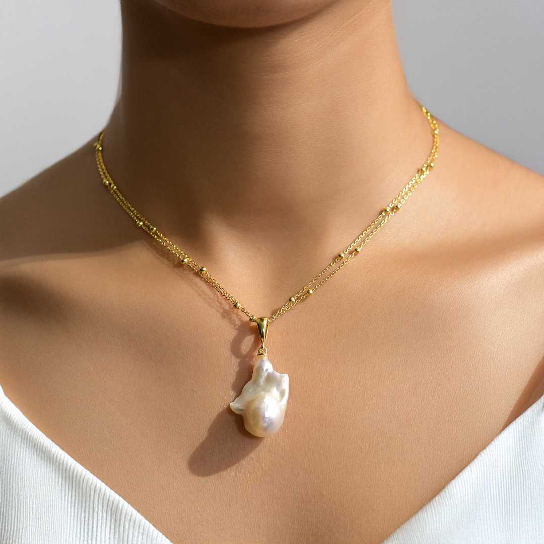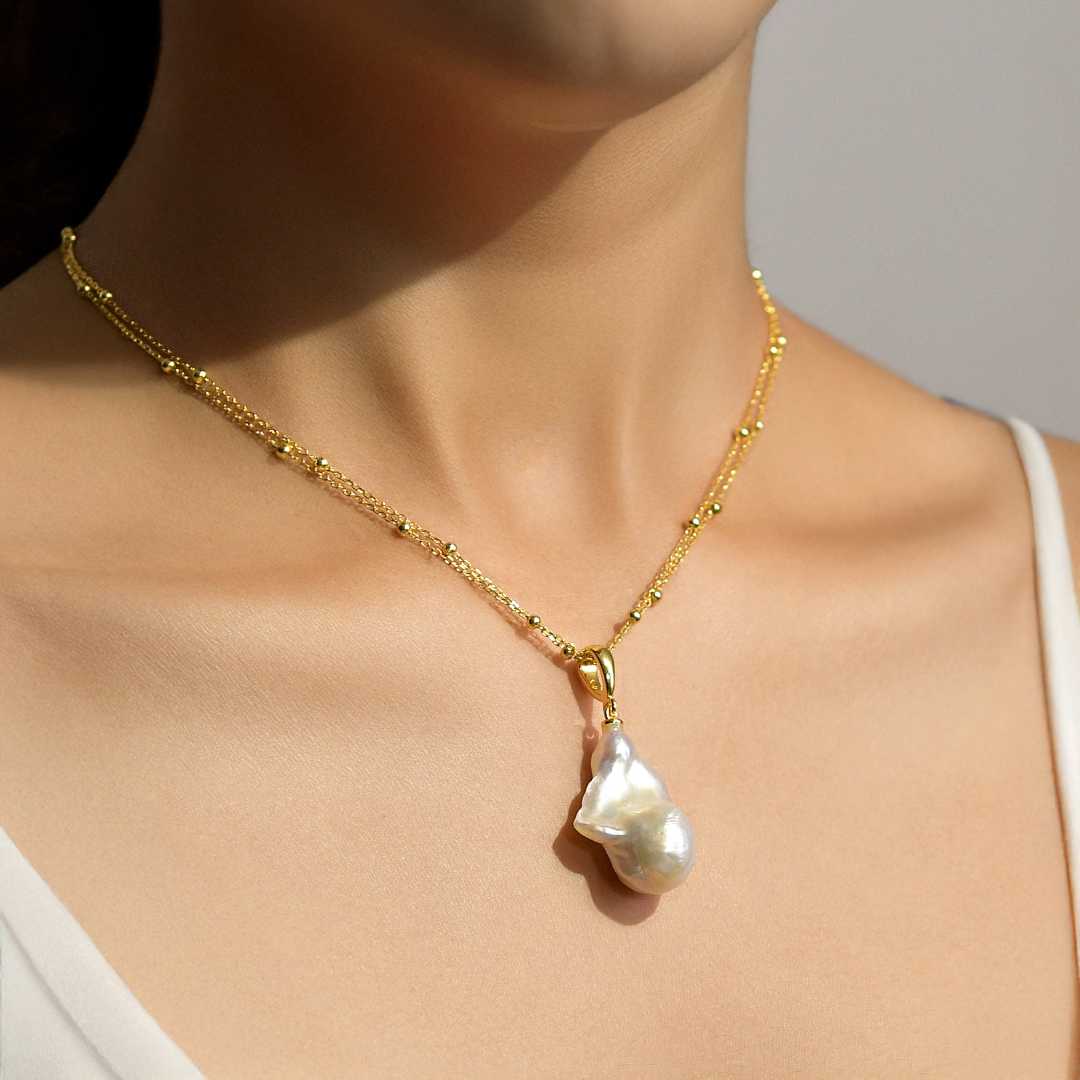 Elevate your style with the timeless elegance of our Essential White Baroque Pearl Pendant. Featuring a lustrous 13–16 mm natural baroque pearl, each piece is uniquely shaped, celebrating the beauty of organic imperfection. The pendant is gracefully suspended from a distinctive two-row silver 2.5 mm ball chain, offering a modern twist on a classic design.