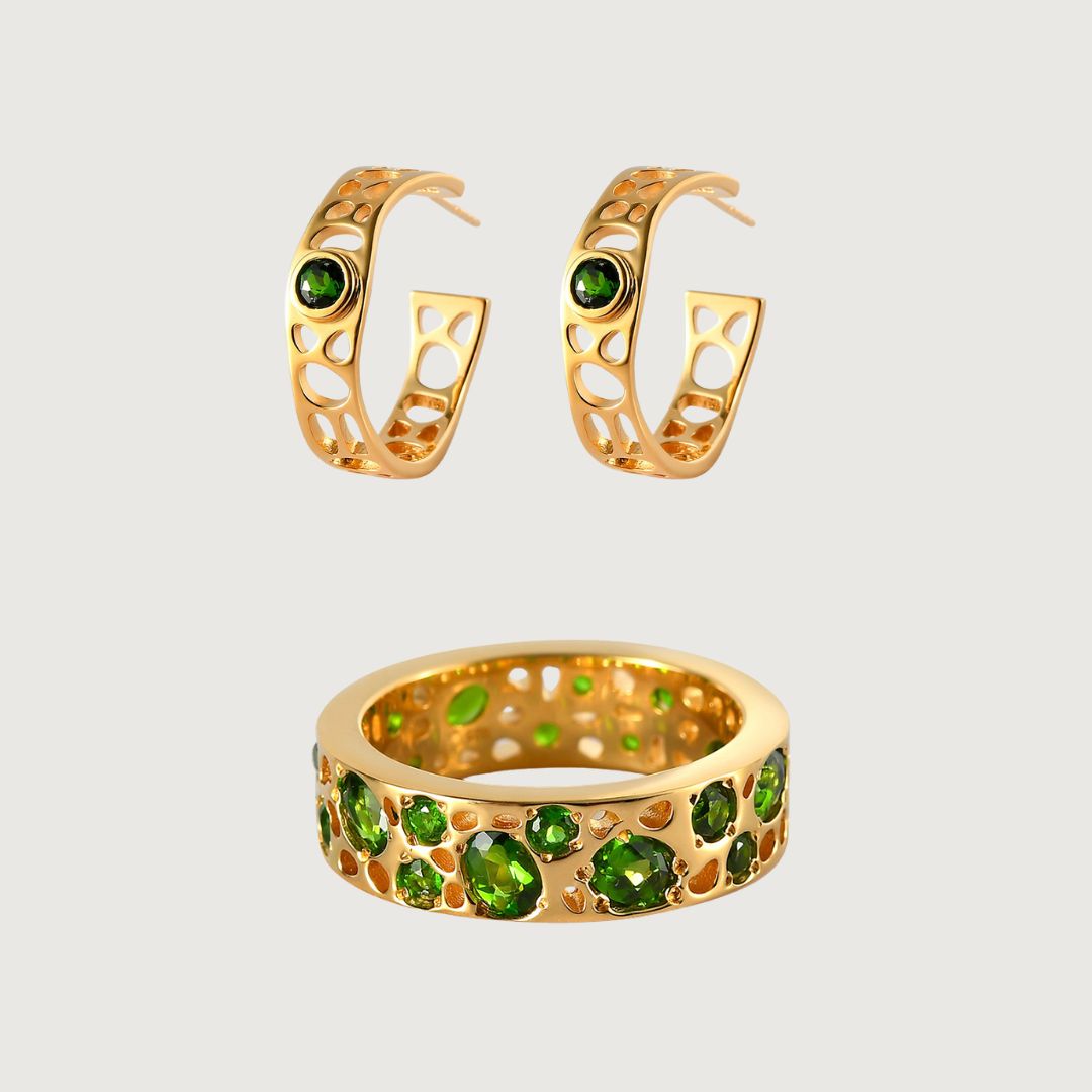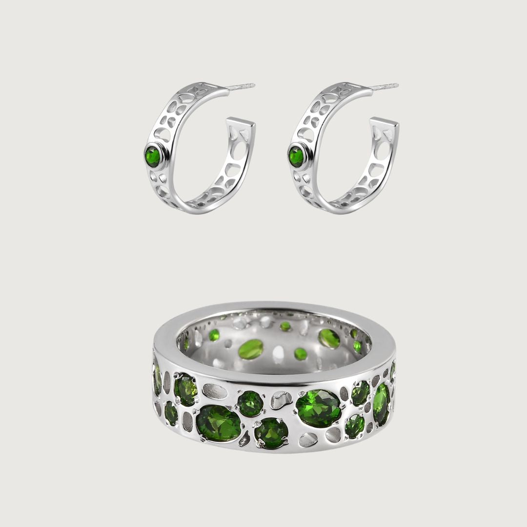 Lattice Solitaire Hoops + Lattice Solitaire Ring with Chrome Diopside