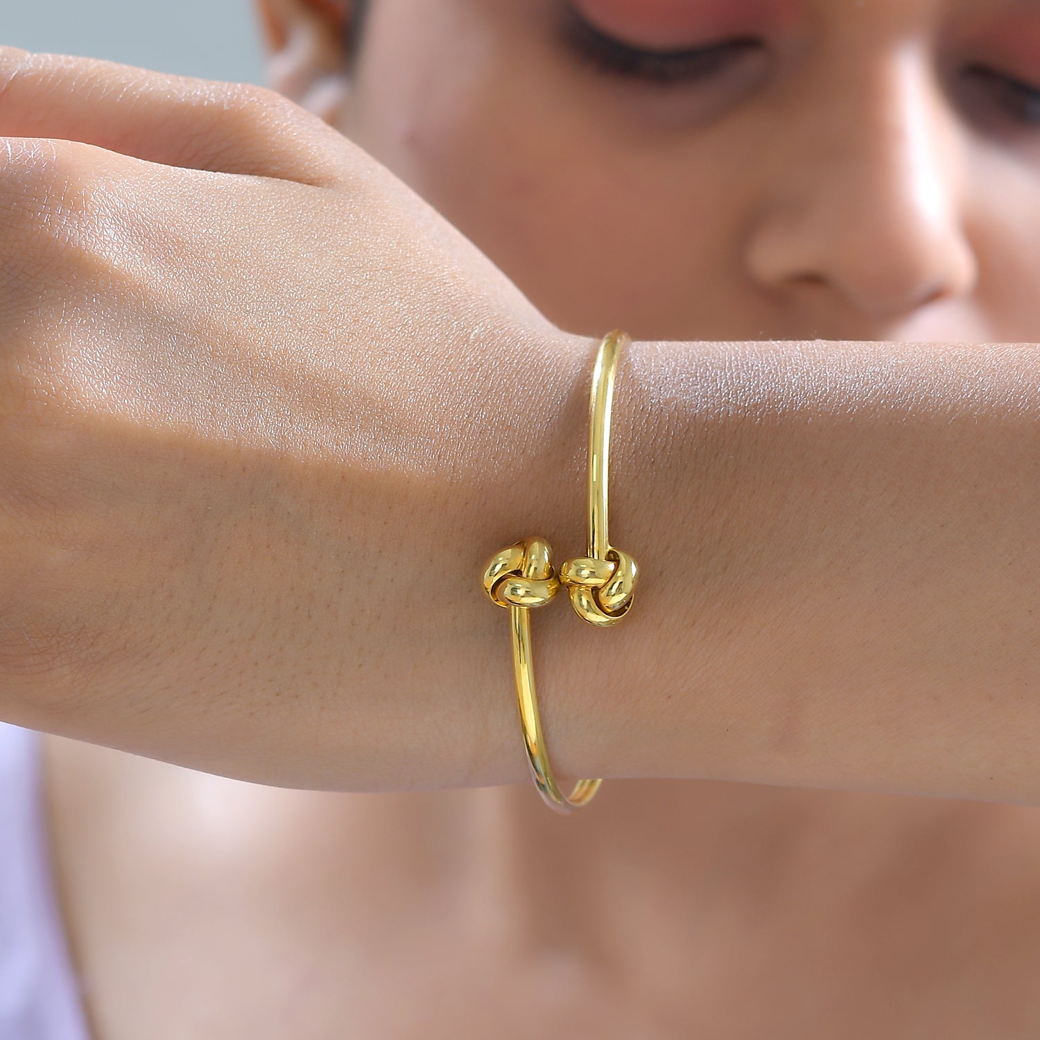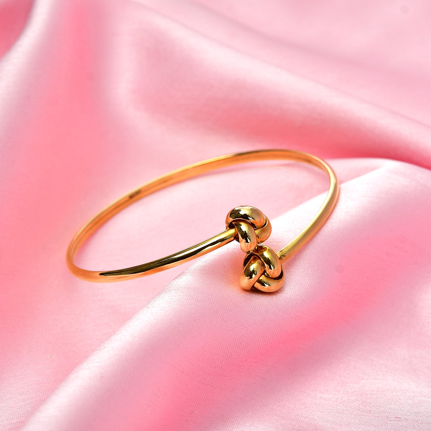 This Love Knot 9K Gold Bangle is a beautiful and elegant piece of jewelry. Crafted with a love knot design and made from 9K gold, the bangle is perfect for stacking up your wrist for an eye-catching look. With a size of 7 inches, it fits comfortably around your wrist and makes a stunning addition to any outfit!