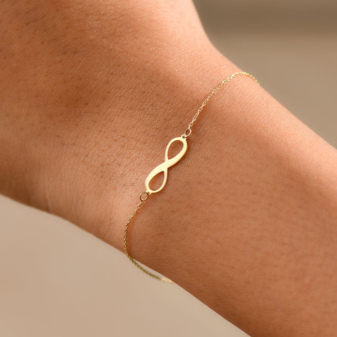 Gold Infinity Station Bracelet + Sleek Loop Paper Clip Drop Earrings