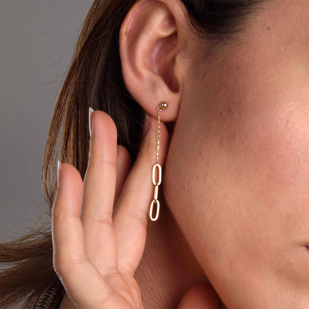 Sleek Loop Paper Clip Drop Earrings + Diamond Cut Curb Link 9K Gold Chain