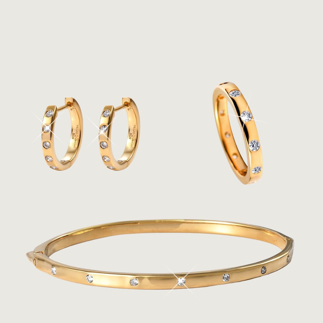 Versa Lab Grown Diamond Huggie Hoop Earrings + Versa Lab Grown Diamond Bangle + Versa Lab Grown Diamond Band Ring