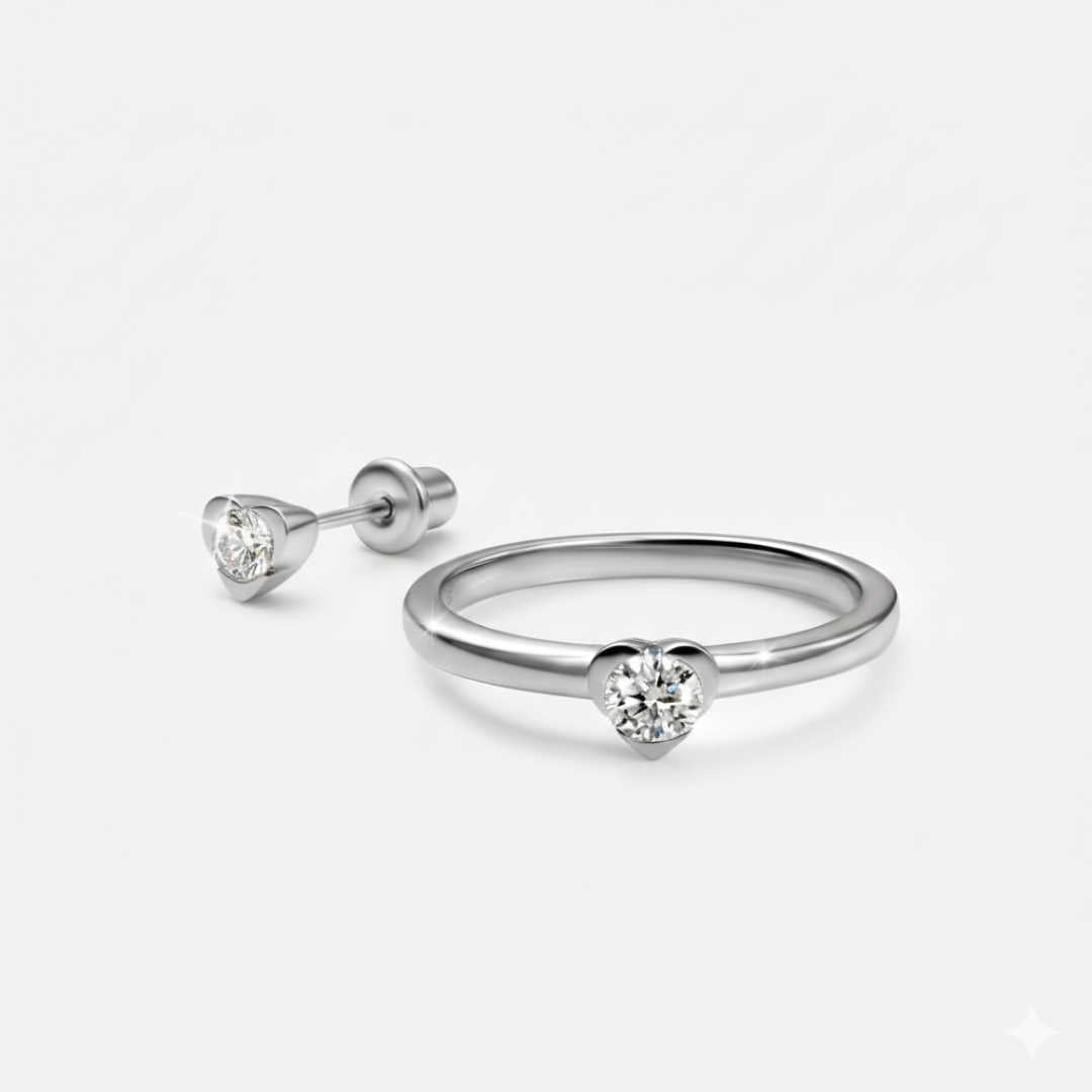 Versa Lab Grown Diamond Solitaire Heart Ring & Earrings