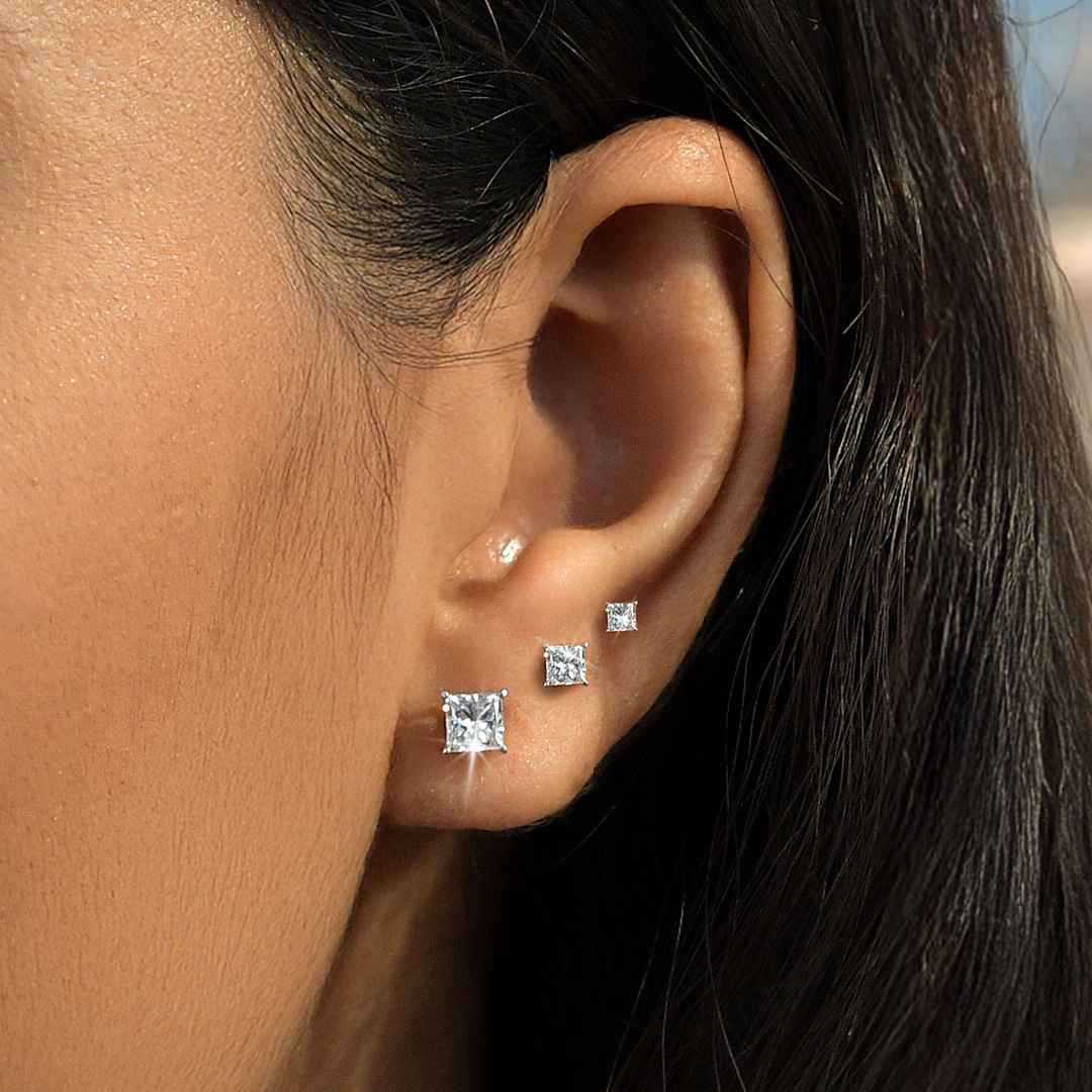 World's First Princess Cut Lab Grown Diamond Sleep Stud Earrings