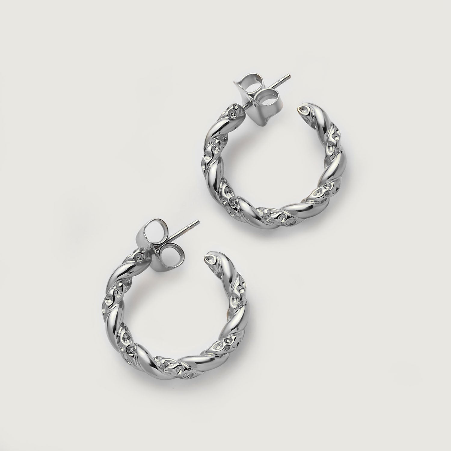 Made in sterling silver, these hoop earrings come with push back clasps. They can be paired perfectly with other stacking earrings or can be worn alone for every day statement.