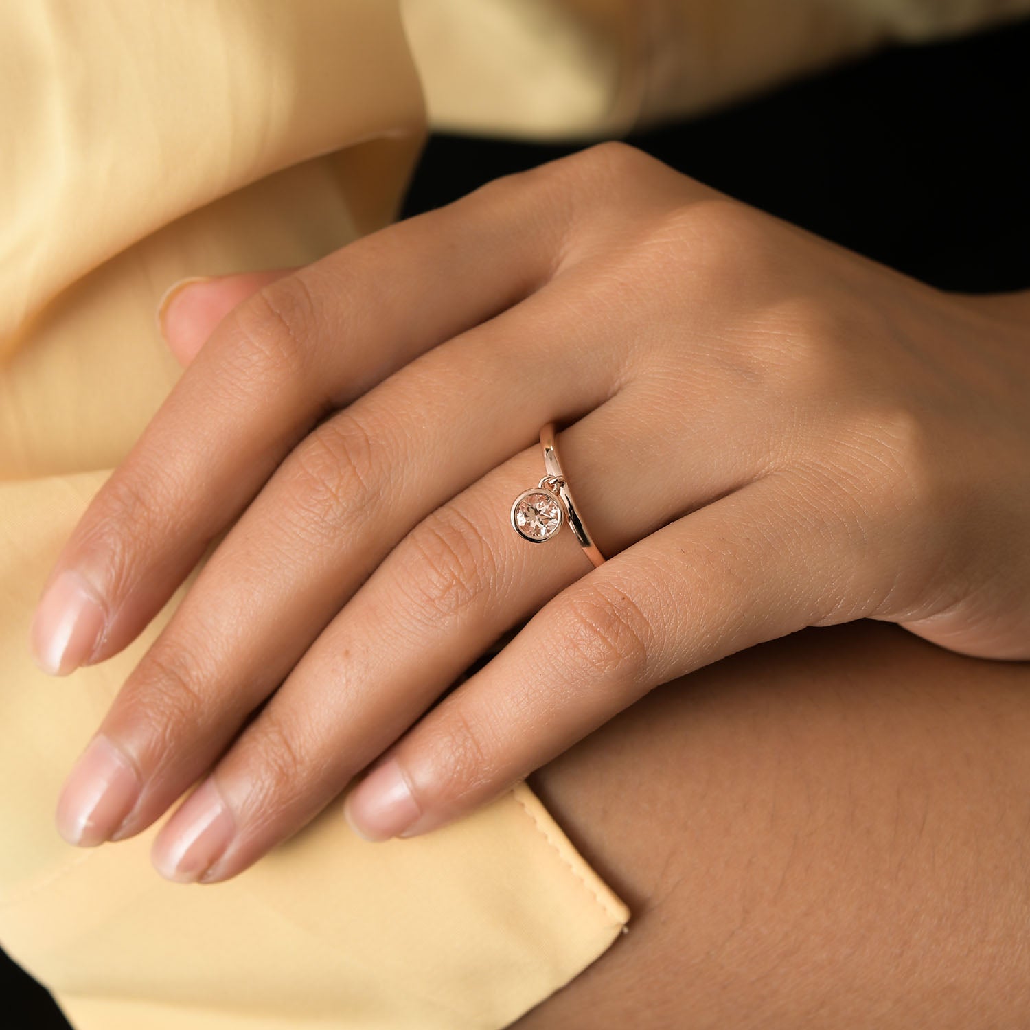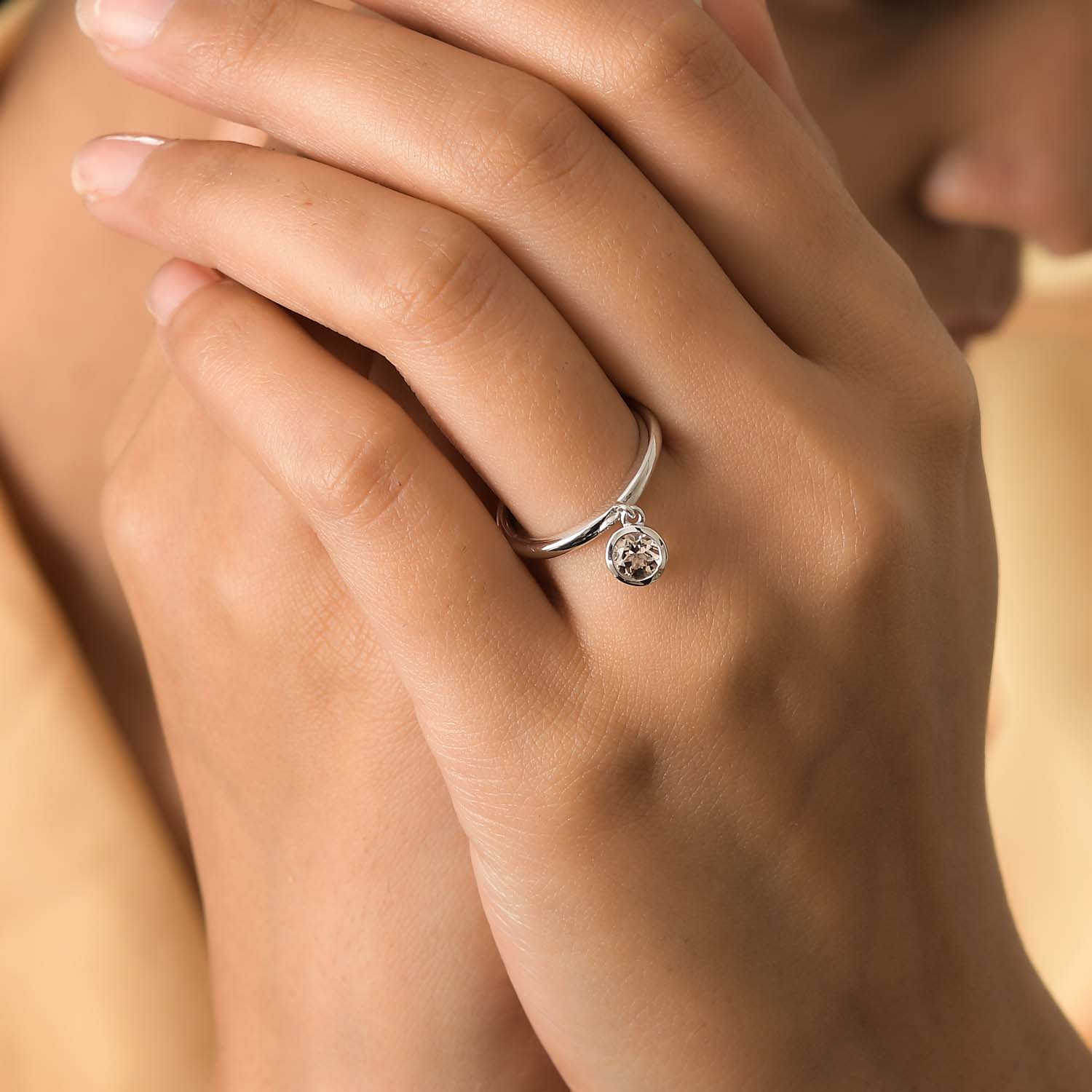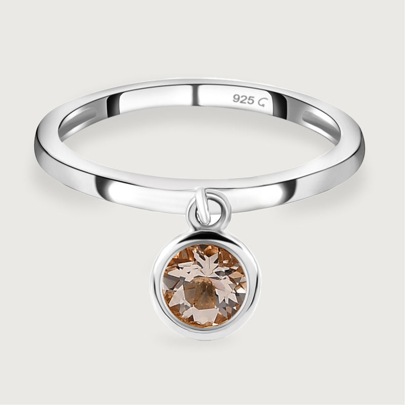Featuring the birthstone of November, this birthstone charm ring is a delightful addition to your style. AAA grade natural genuine morganite is bezel-set in the swinging charm. Pair this your birthstone jewellery, and create your look.