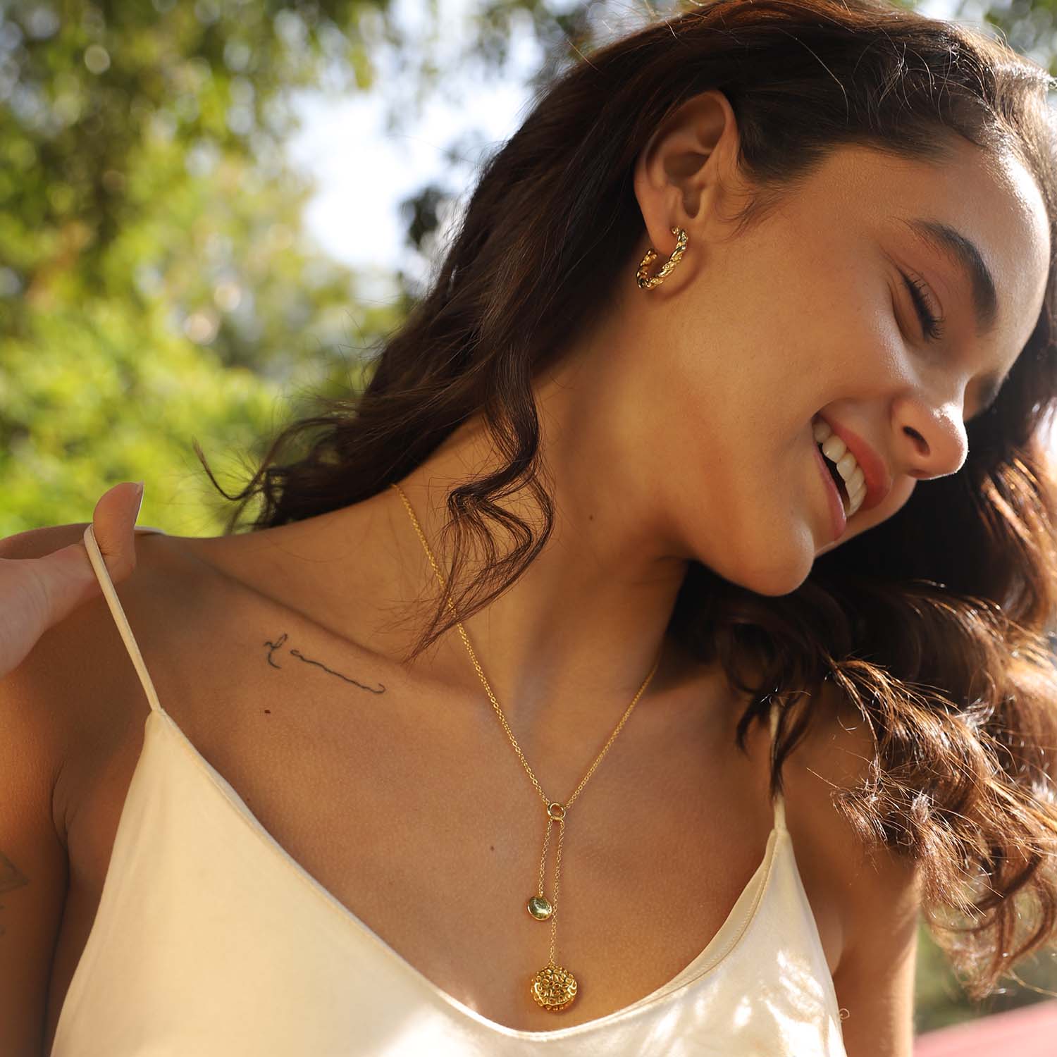 Pebble Y Statement Necklace + Lattice Pebble Drop Earrings