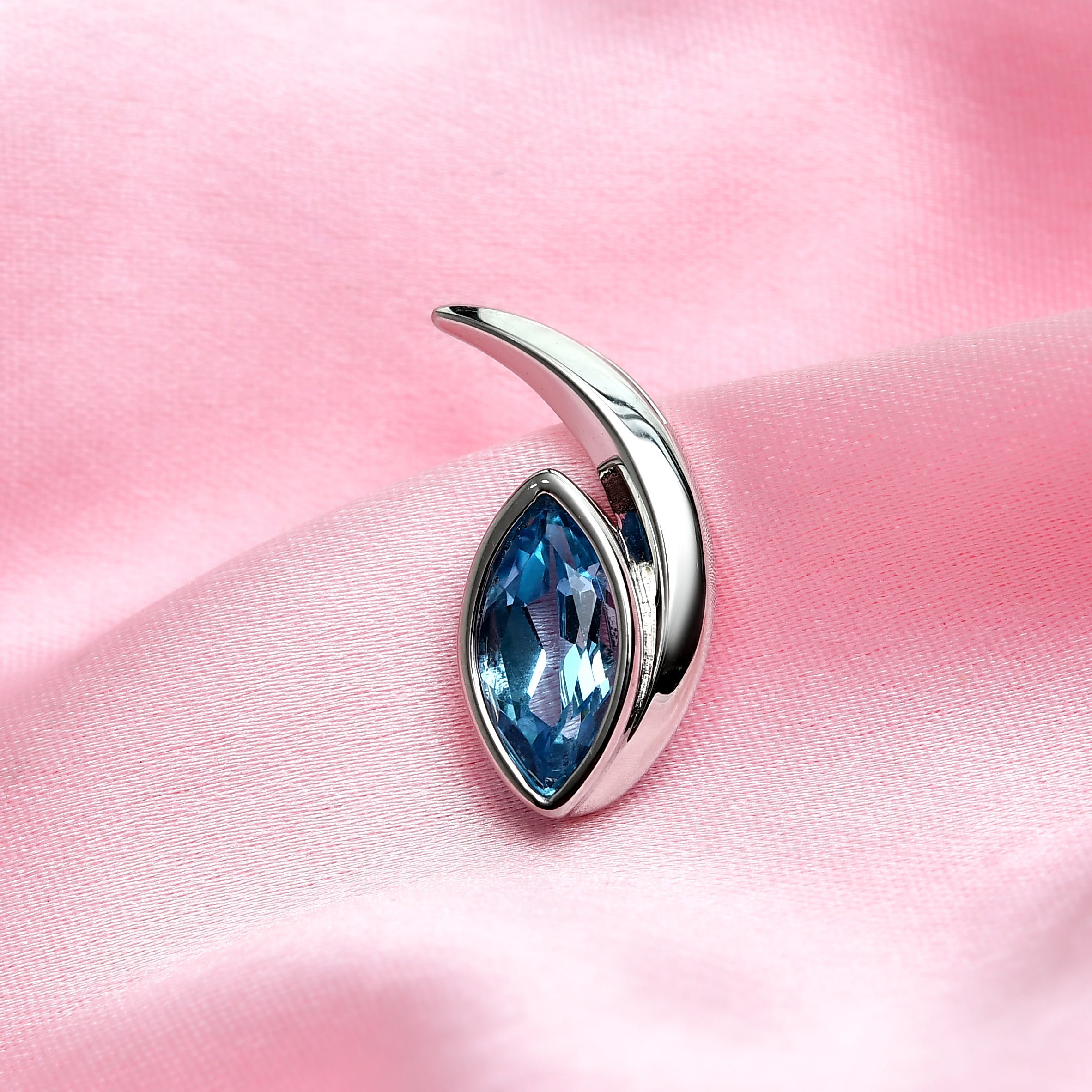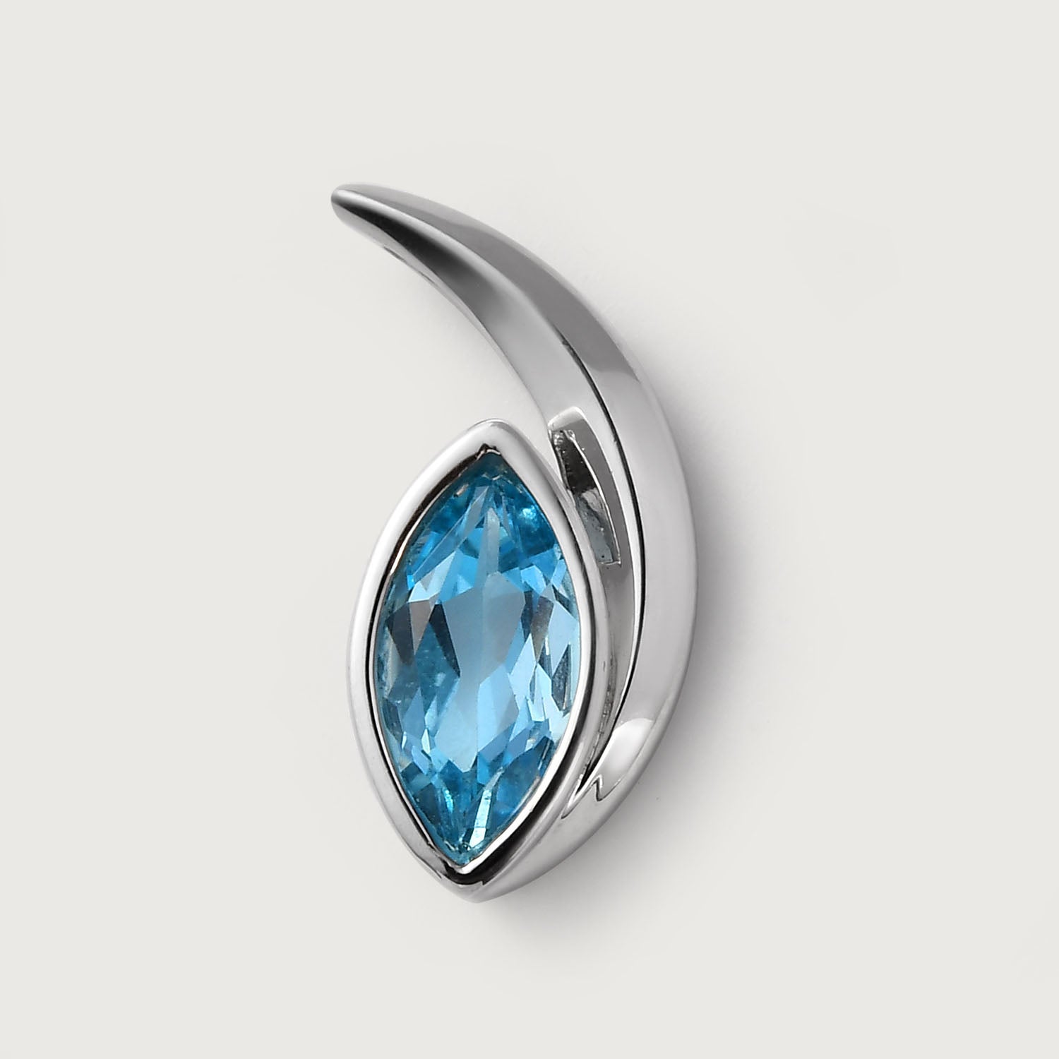 A new addition to Rachel's Surf Moon collection, bearing resemblance with the shining crescent moon. Studded at the centre is a marquise-cut Swiss Blue Topaz. Dainty in size, it can be worn with any chain of your choice (CHAIN NOT INCLUDED). Pair it with Surf Moon Topaz Solitaire Ring or earrings to complete the set.