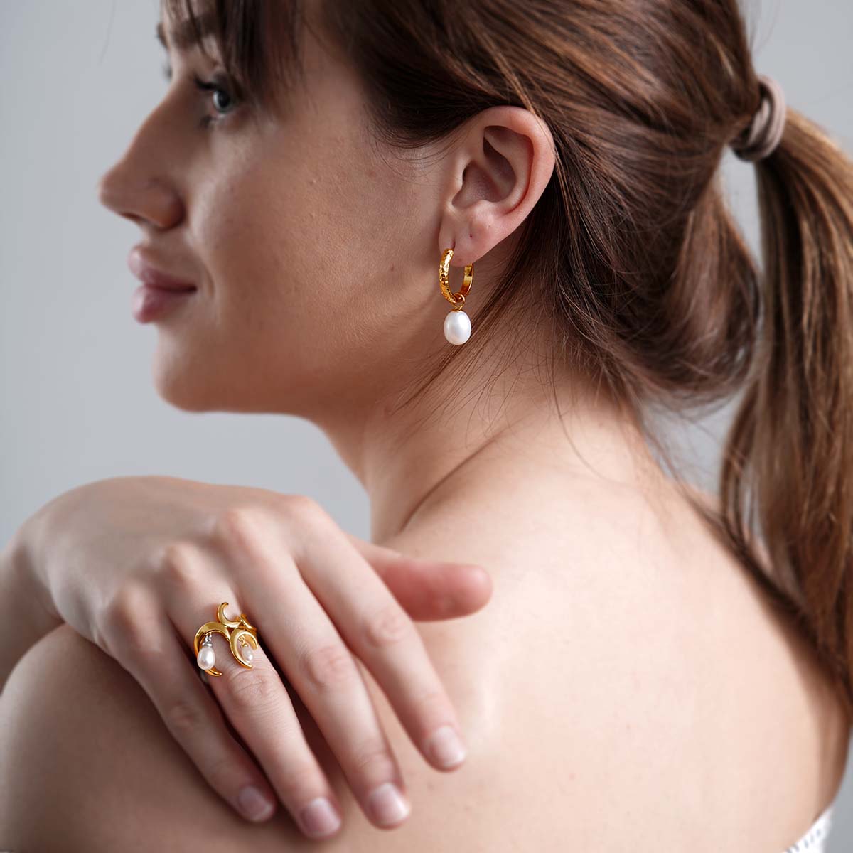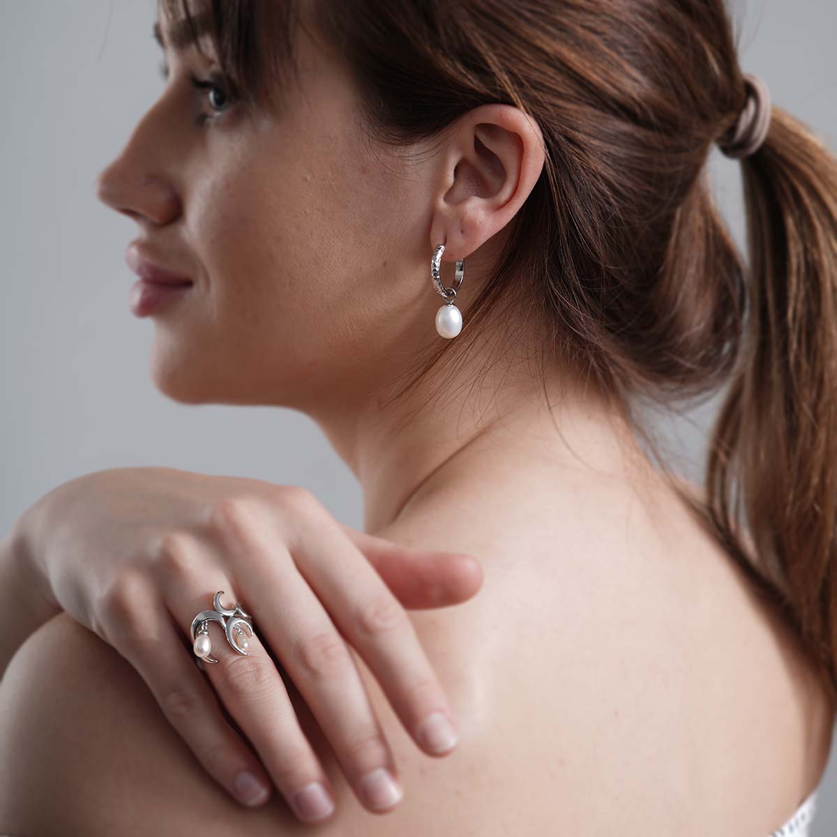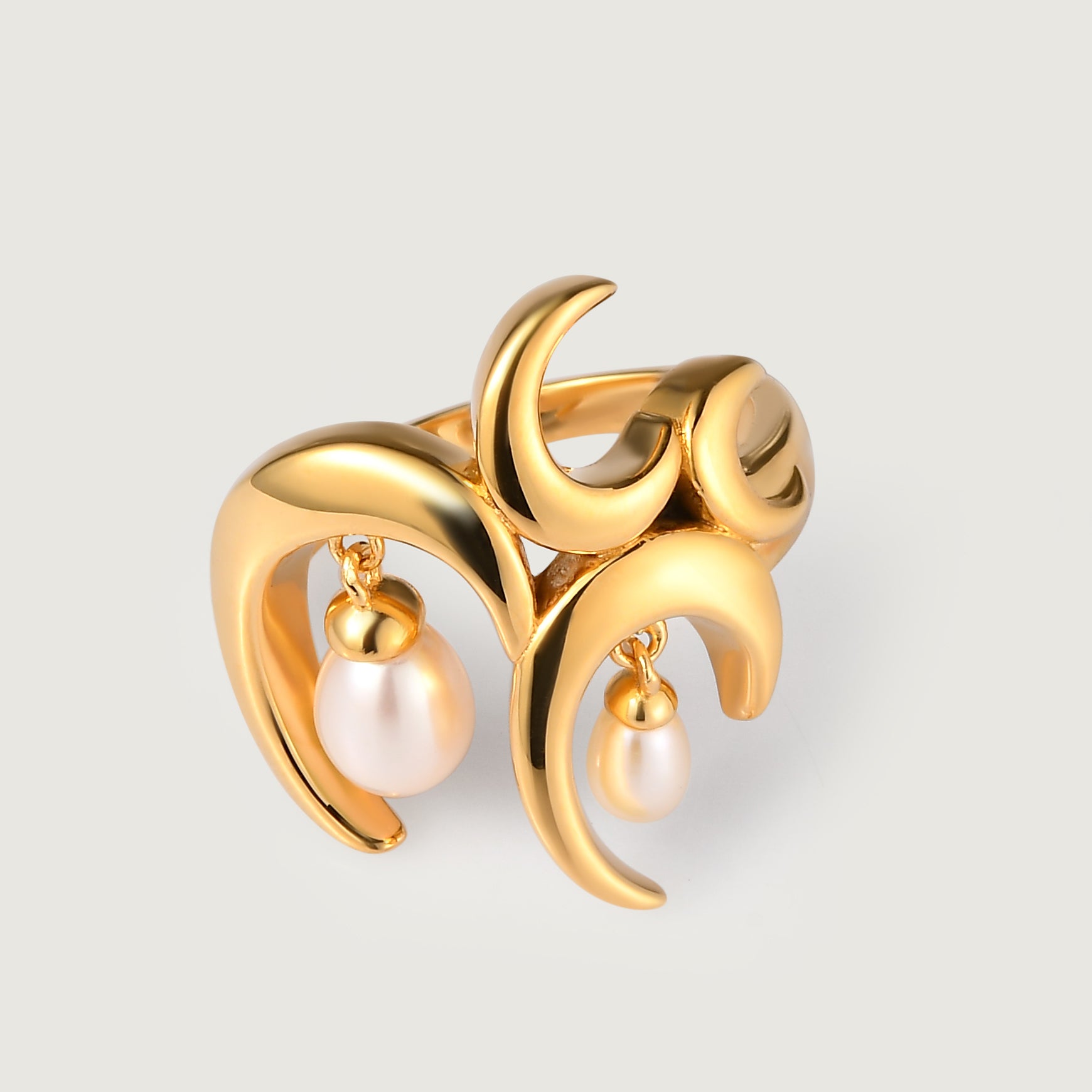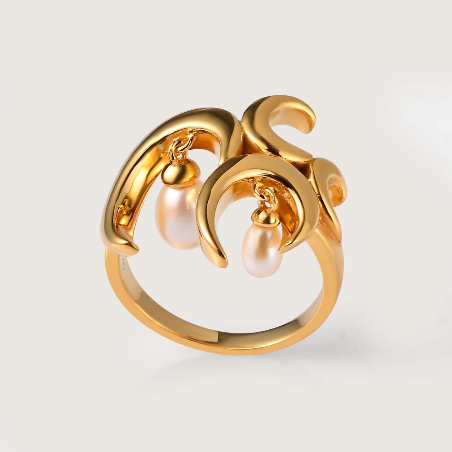 Add the magic of freshwater pearls to your look with this unique statement charm ring. Studded with dangling freshwater white pearls embedded in an artistic wave design, our signature Wave Ring with White Freshwater Pearls is that piece of accessory that everyone will about.